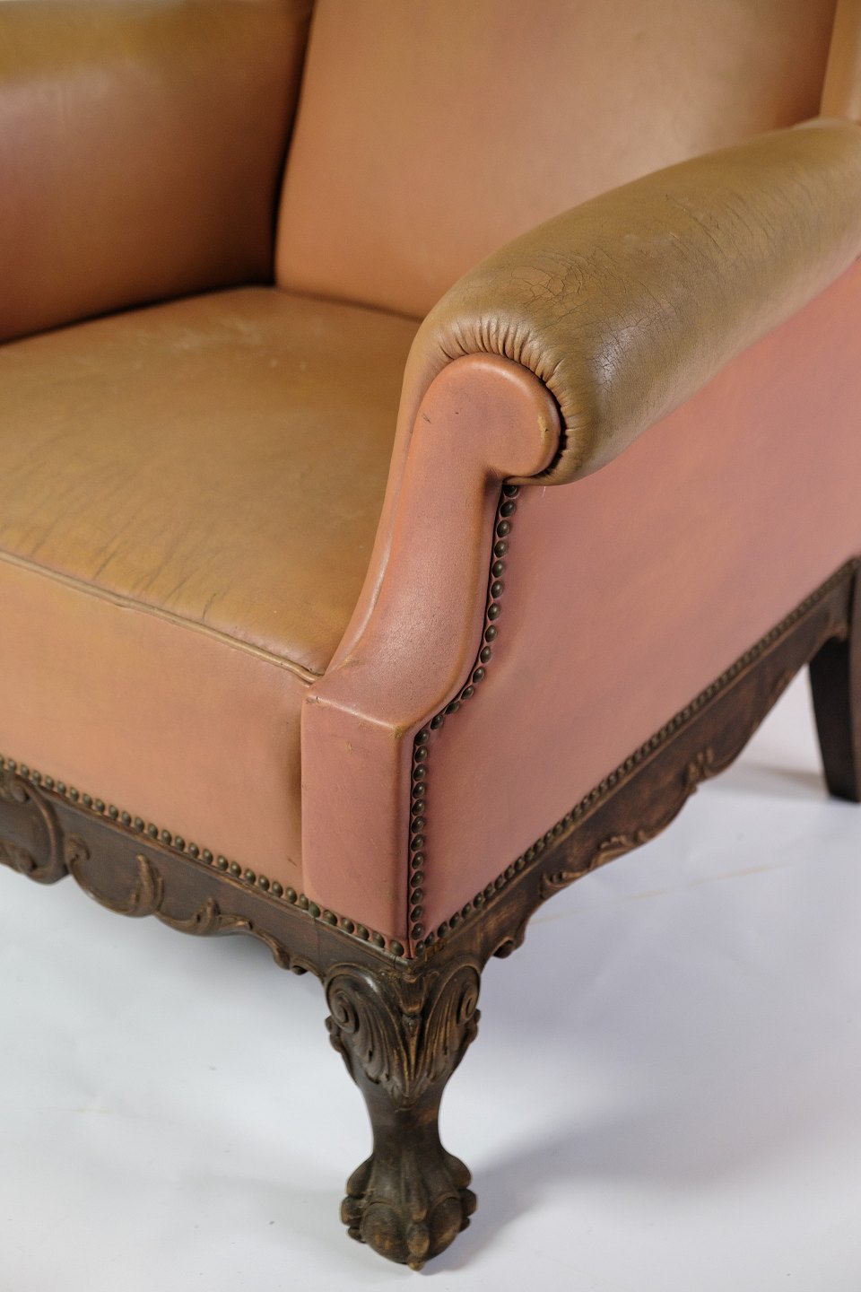 Antique High Flap Chair - Chesterfield - Brown Studded Leather - Year 1920