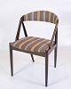 This set of six dining room chairs, model 31, designed by Kai Kristiansen and manufactured by Schou Andersen in the 1960s, is an excellent example of mid-20th century Danish furniture design. The chairs are made of dark wood and upholstered in striped fabric, which combines robustness with elegance and functionality.
