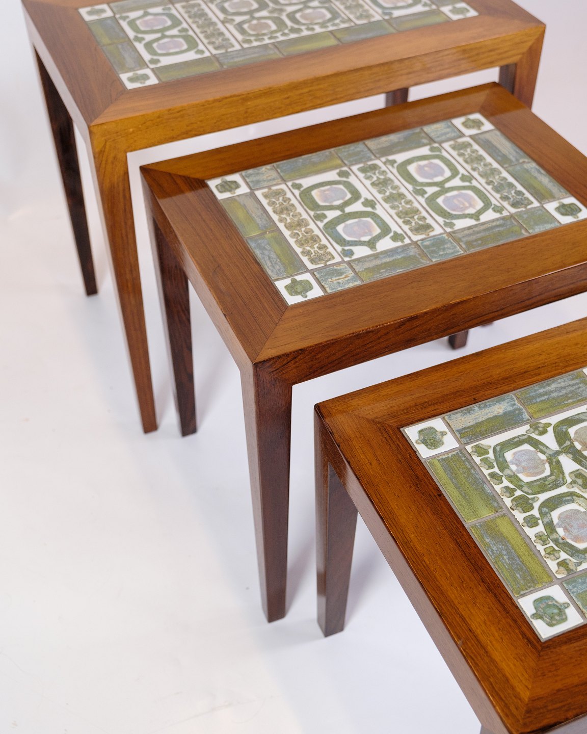 Set Of Deposit Tables - Rosewood - Royal Copenhagen Tiles - Severin Hansen - 1960s
