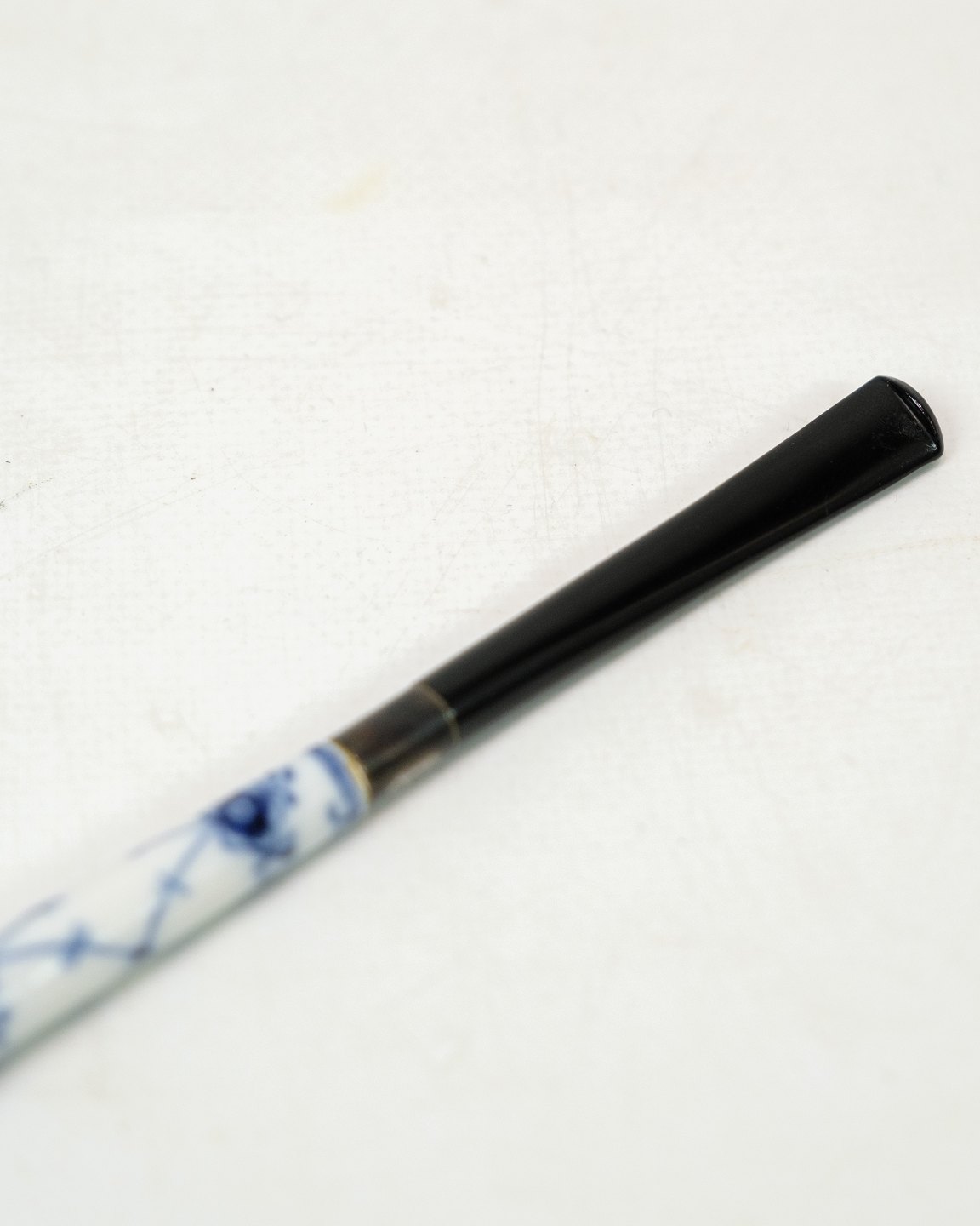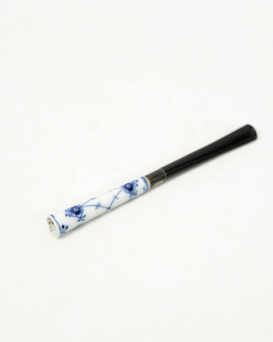 SoldRare Cigarette tube in patterned mussel painted fluted with a silver mount. Perfect condition with no damage.