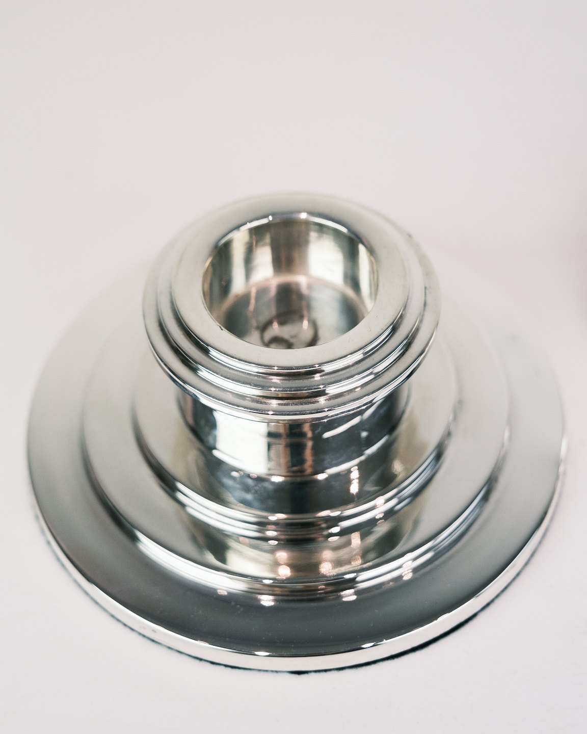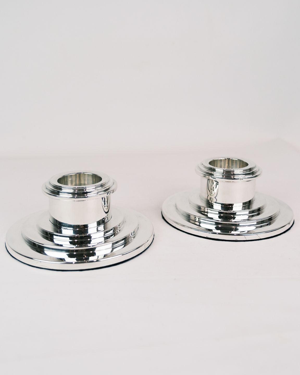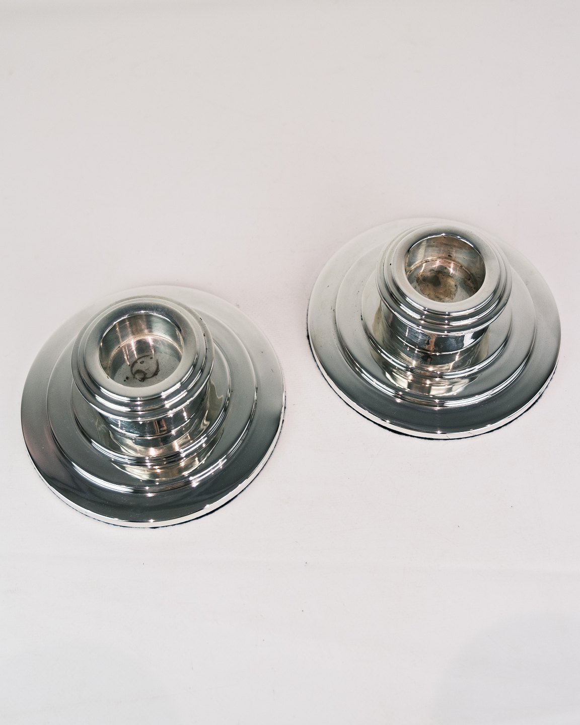 Set of 2 candlesticks in genuine 830 sterling silver from the 1940s, in Art Deco style. These stands combine the characteristic design of the time with high quality and elegance.