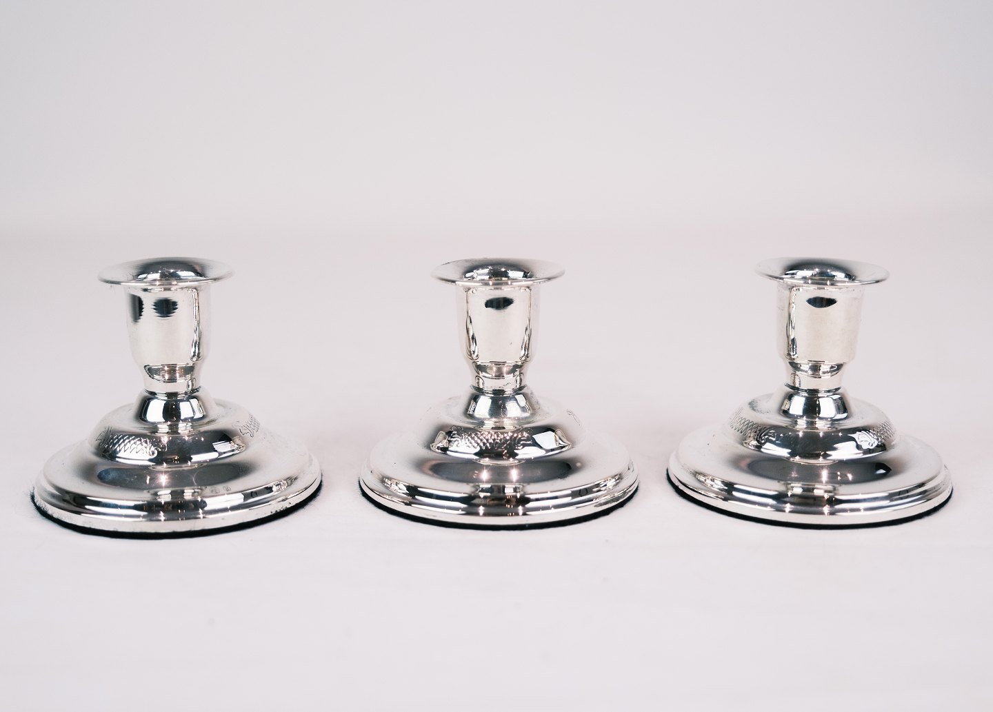 Set of 3 candlesticks in 830 sterling silver from the 1930s. Made of solid silver that retains its shine and quality over time. A classic example of craftsmanship from the period.