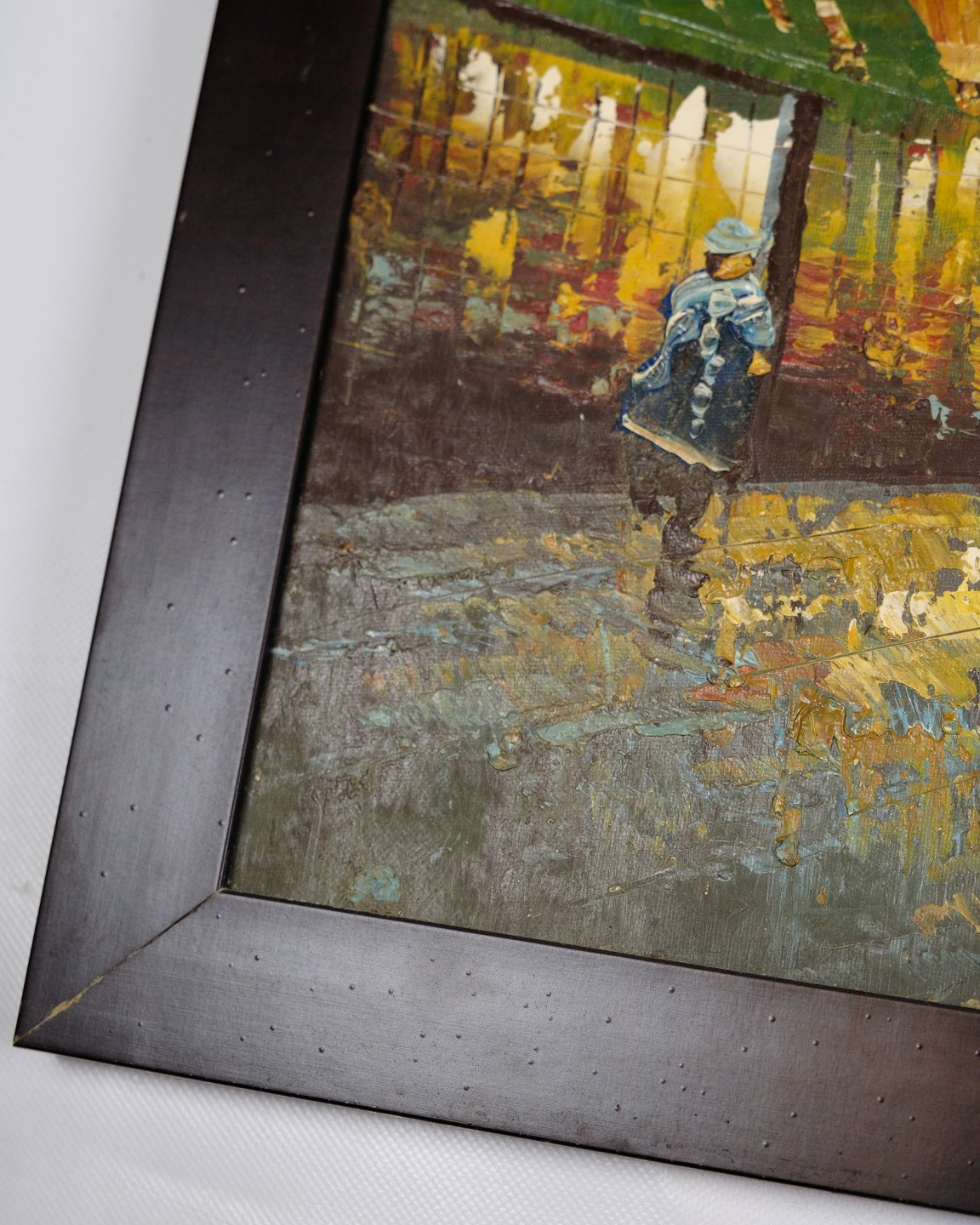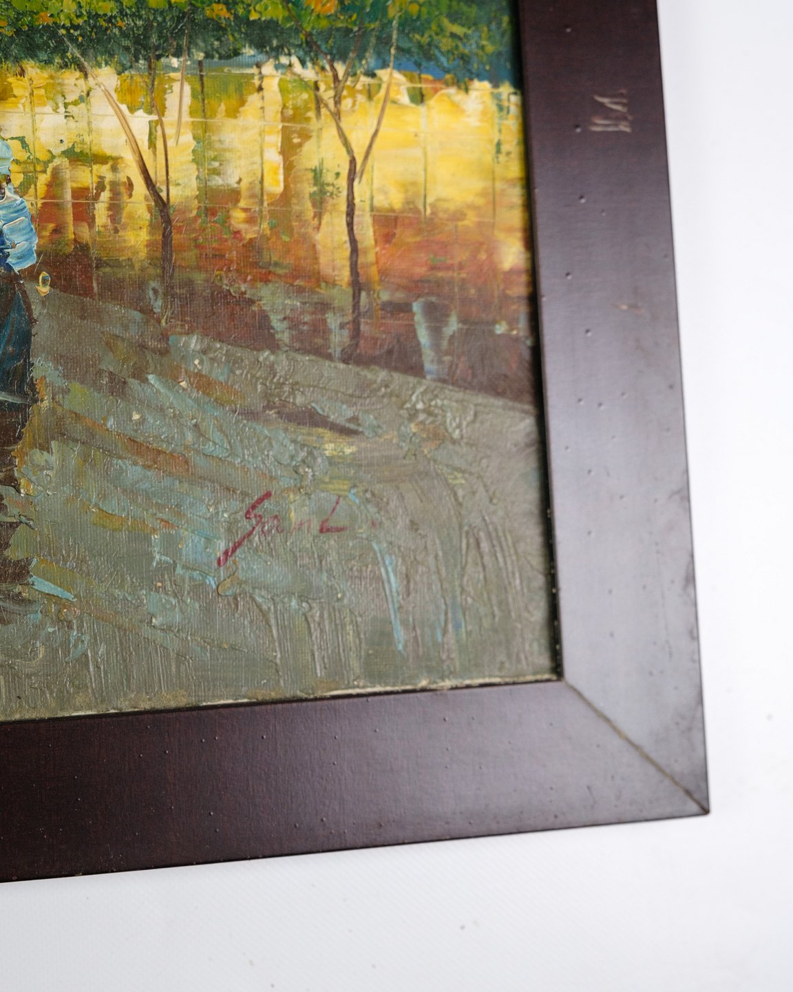 Oil painting with the motif of a late summer evening in Paris, where the Eiffel Tower can be seen in the background.