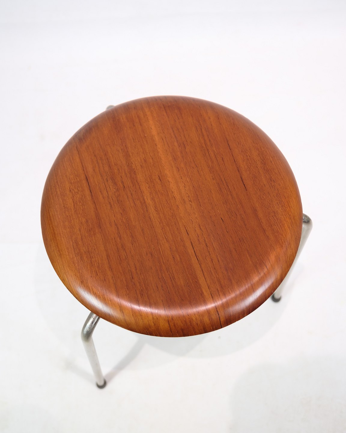 Sæt af 2 Dot skamler, model 3170, designet af Arne Jacobsen og produceret af Fritz Hansen i 1950'erne. Skamlerne er udført i teak, som giver dem et varmt og klassisk udseende. Dot skamlen er et eksempel på Jacobsens minimalistiske og funktionelle designstil.