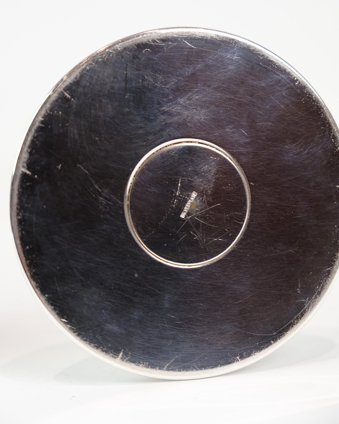 Sæt af 2 lysestager i forsølvet messing fra 1930'erne, dekoreret med en elegant perlekant ved foden. Lysestagerne kombinerer klassisk design med detaljerigdom, hvor den fine perlekant tilføjer et tidstypisk dekorativt element. Deres forsølvede overflade giver dem et tidløst udseende, og den solide messingstruktur sikrer både holdbarhed og stabilitet.