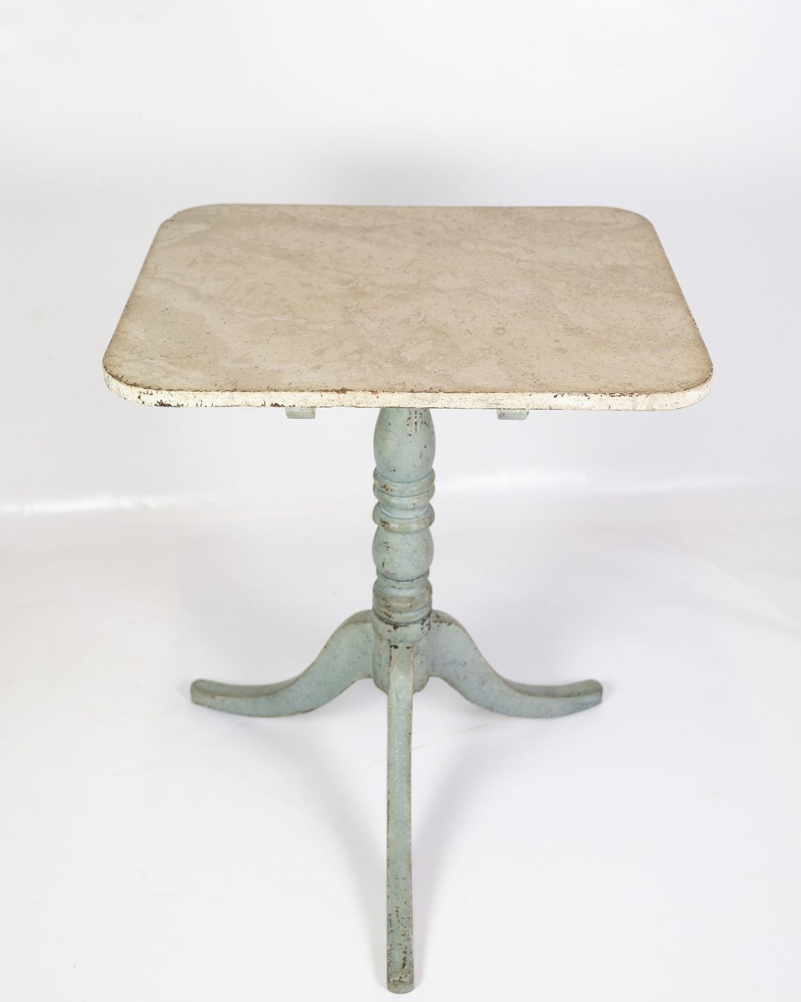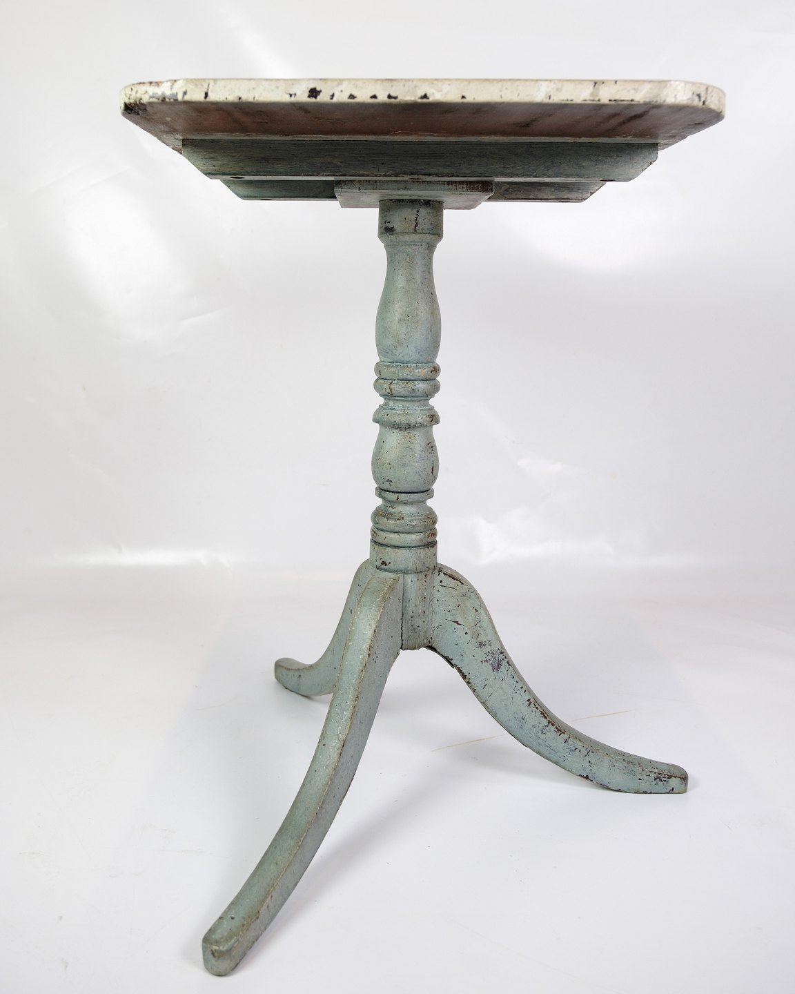 Original Malet Søjlebord/Sidebord - Med Vip funktion - Blå & Grå Farver - 1840erne