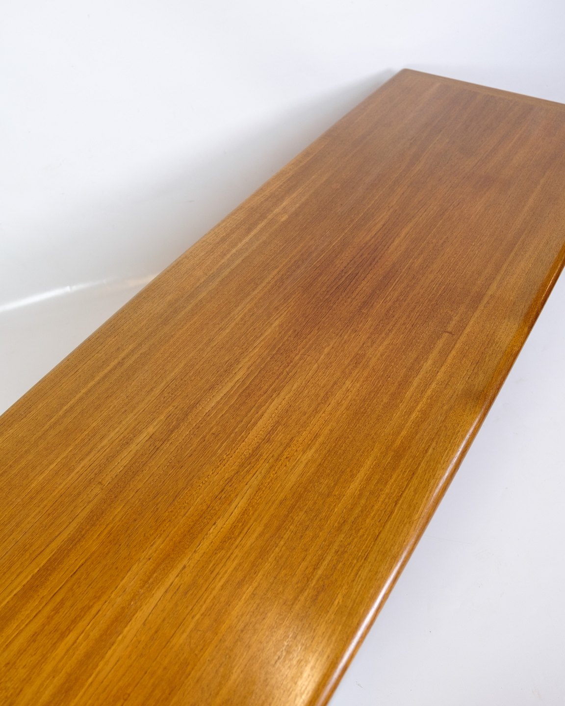 Sofabord i teak, designet af Grete Jalk og fremstillet af Glostrup Møbelfabrik i 1960'erne. Bordet har et enkelt og stilrent design, som er kendetegnende for dansk møbelkunst fra perioden. Teaktræet giver bordet en varm farvetone og viser træets smukke åretegninger, hvilket understreger materialets kvalitet.