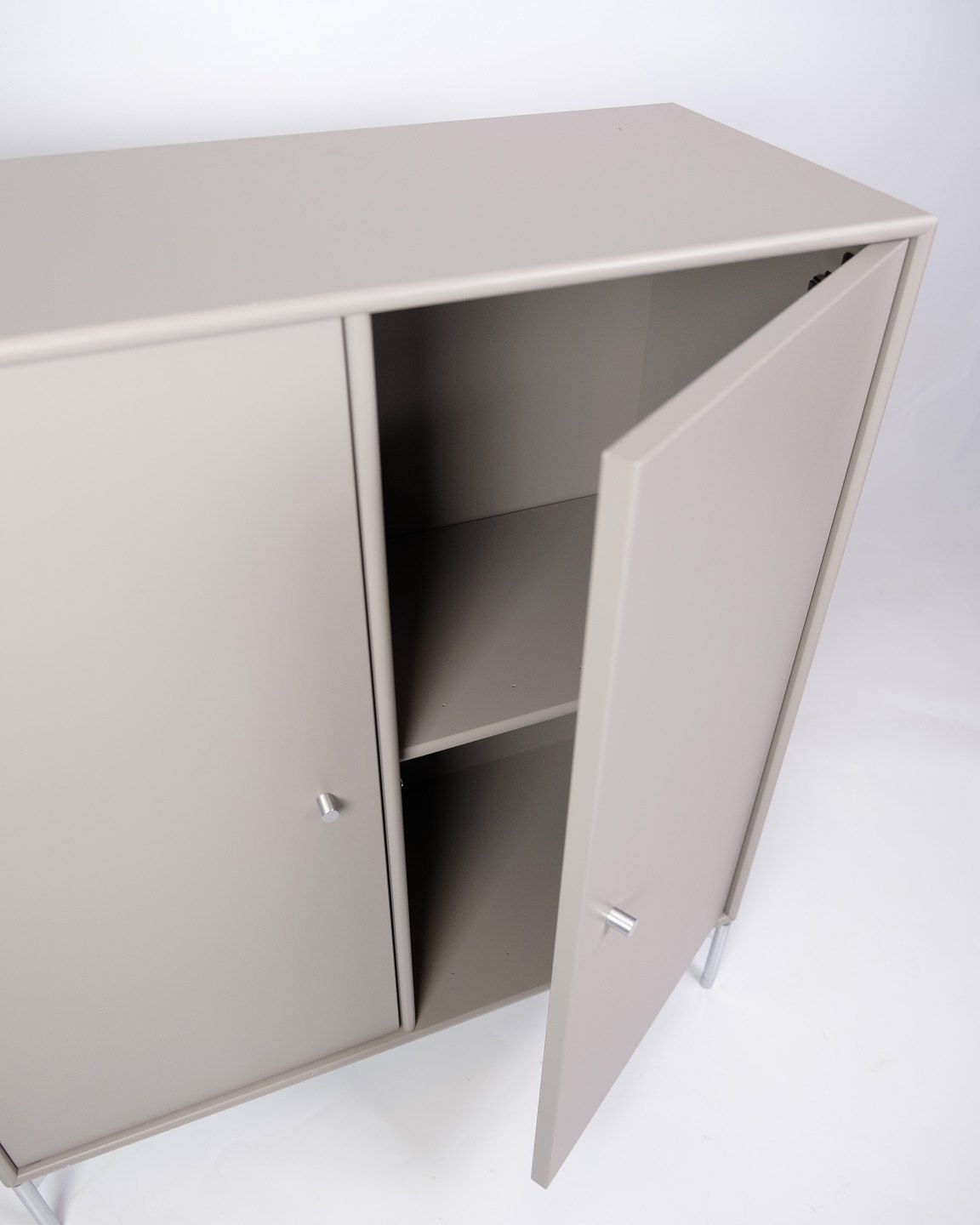 SolgtMontana skab, model 1118, designet af Peter J. Lassen og udført i en grå farve. Skabet er en del af Montanas fleksible opbevaringssystem, der er kendt for sin funktionelle og modulære opbygning. Model 1118 er ideel til opbevaring og kan anvendes både i hjemmet og på kontoret, med mulighed for at tilpasse det til forskellige opbevaringsbehov.