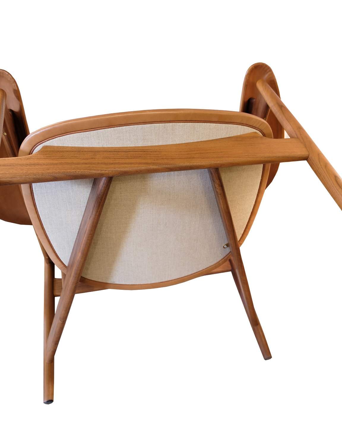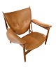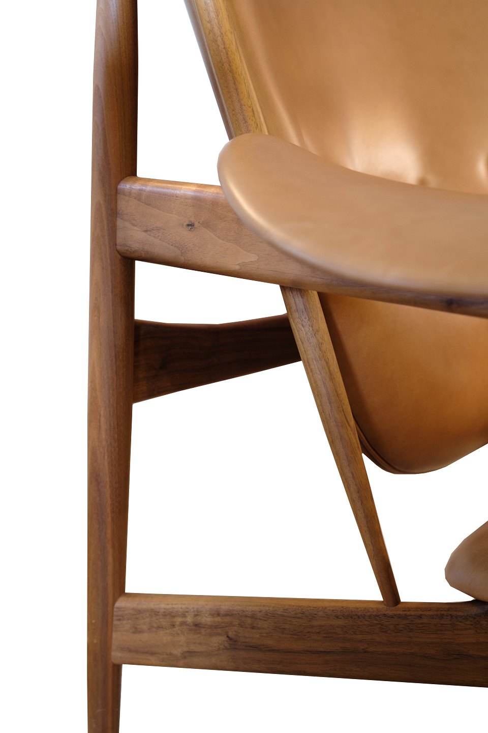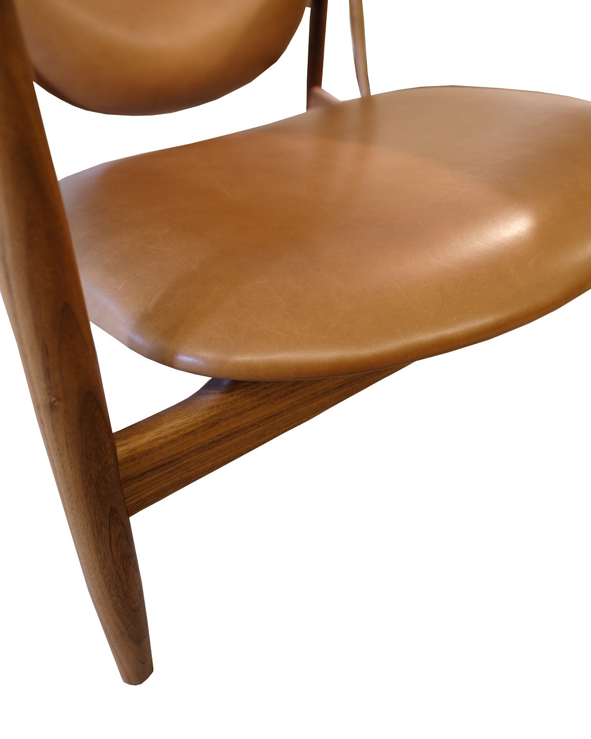 Designed by Finn Juhl in 1949, he invented the chief's chair as we know it today. Produced in walnut wood with cognac leather of the highest quality. The chair has an accompanying stool, which fits the chair in both wood and leather. The chair is made like a sculpture, due to the large size and beautiful details, which is also the reason for the English name "Chieftains Chair".