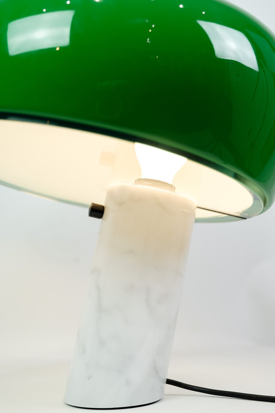 Flos Snoopy Bordlampe - Fod Af Hvid Marmor & Grøn Top Skærm - Achille & Pier G. Castiglioni - Flos