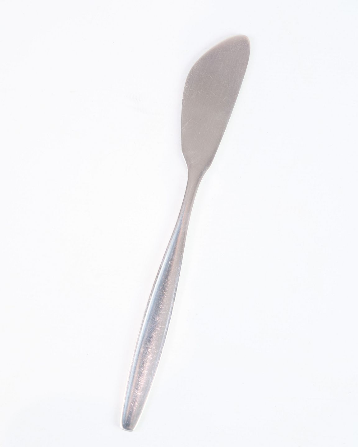 Georg Jensens smørkniv i sterling sølv fra Cypres-serien er designet af Tias Eckhoff i 1953. Cypres-mønsteret er kendt for sin enkle og elegante form, der afspejler skandinavisk designtradition.