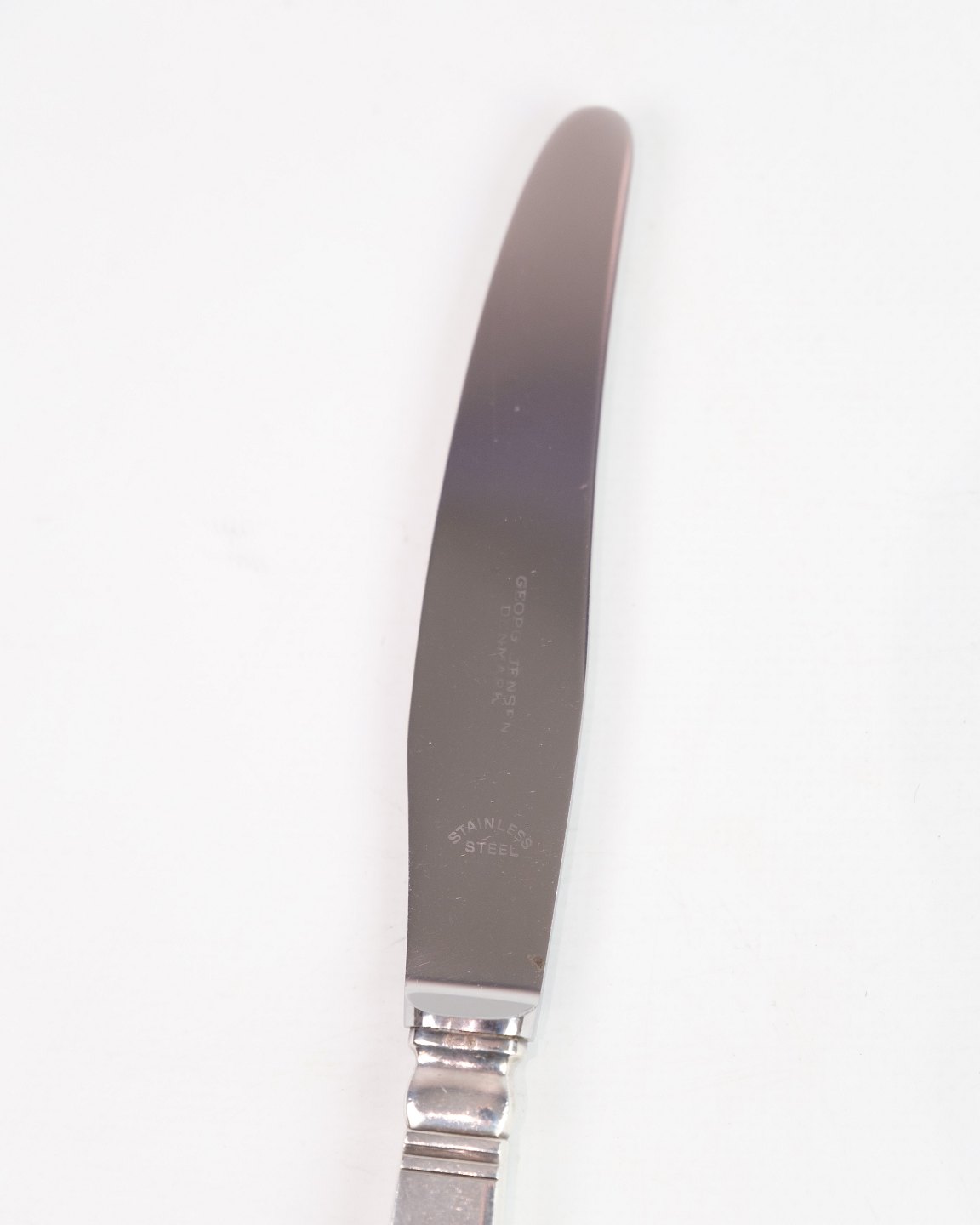 This dinner knife is part of Georg Jensen's "Blok" cutlery series, designed by Ib Just Andersen in 1934. Made of sterling silver, the knife is characterized by its simple and functional design, typical of Scandinavian modernism.