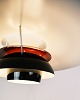 PH5 lamp designed by Poul Henningsen in 1958 and manufactured by Louis Poulsen. The lamp has lacquered metal shades in black, red and white, and is a newer model.