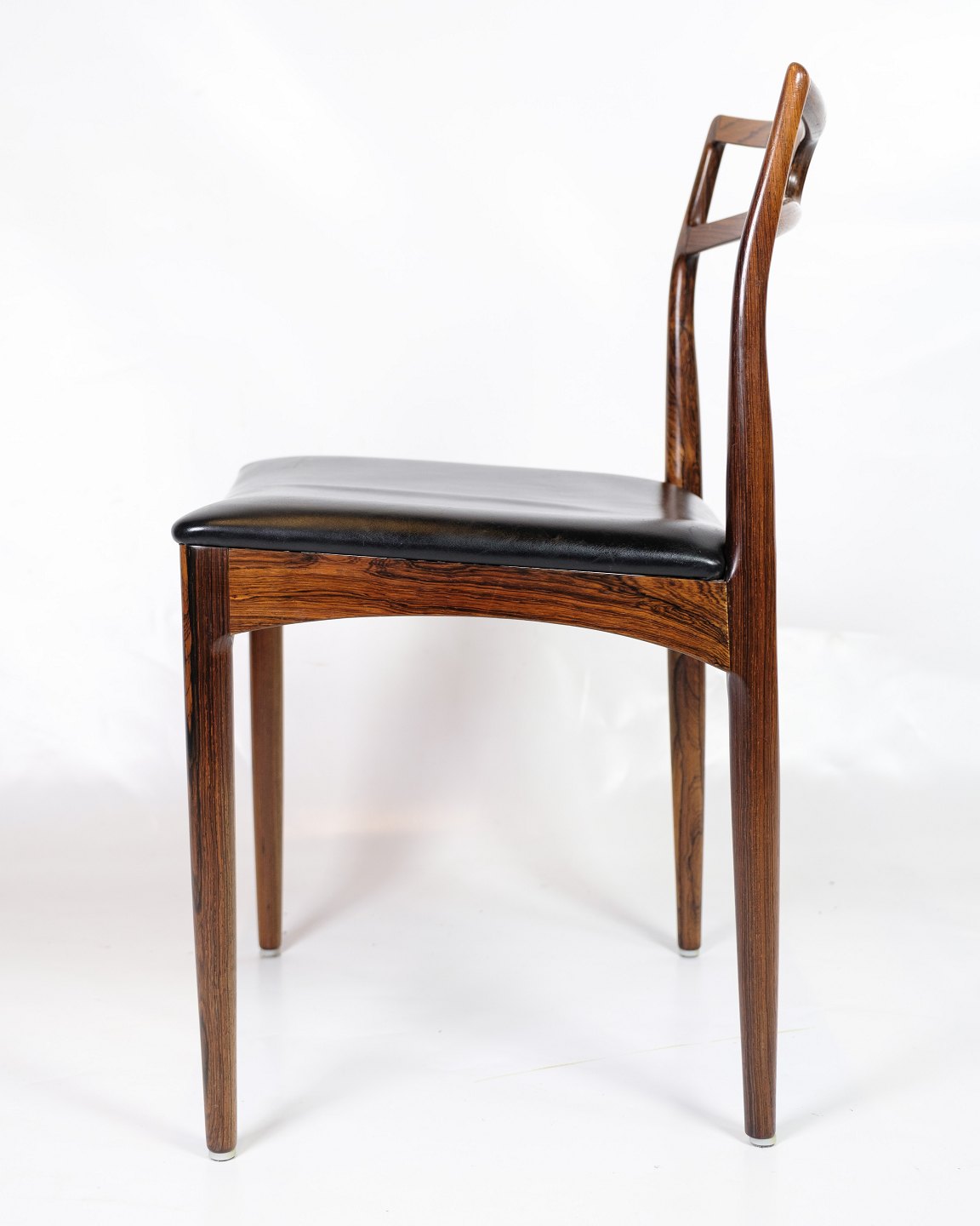 Set of 6 Dining Chairs - Model 94 - Rosewood & Black Leather Seat - Johannes Andersen - Christian Linneberg Furniture Factory - 1960s