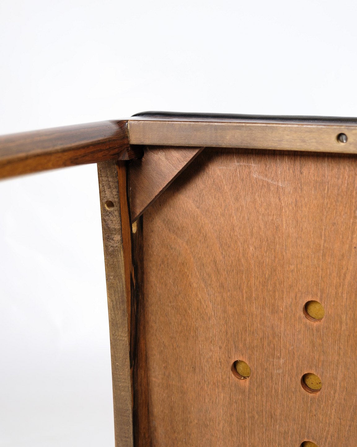 Johannes Andersen, born in Aarhus in 1903, was a prominent Danish furniture designer who began his career as a cabinetmaker's apprentice. He later established his own workshop and became known for his innovative and functional designs, often characterized by organic shapes and the use of exclusive woods such as rosewood and teak.