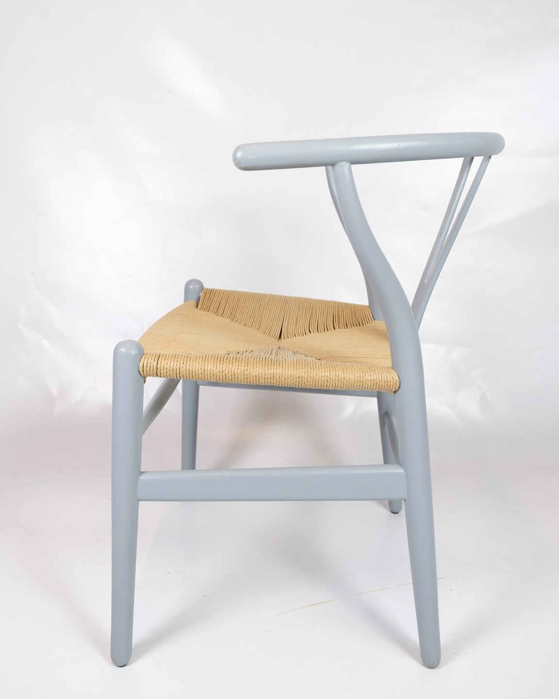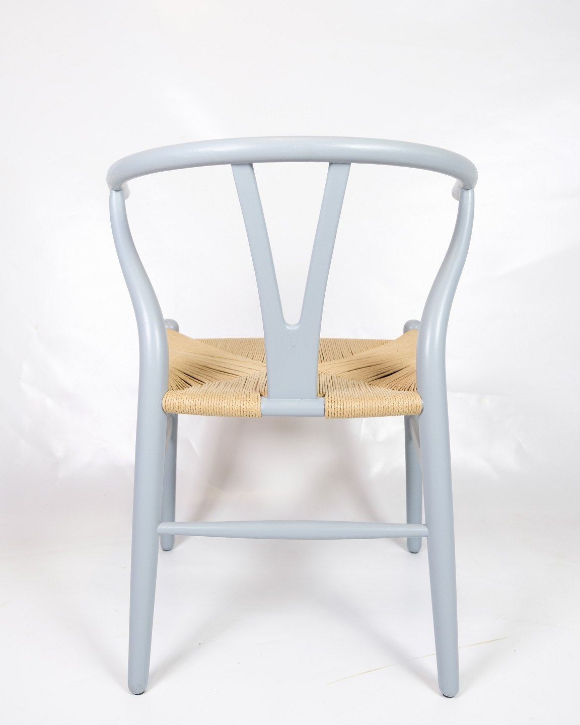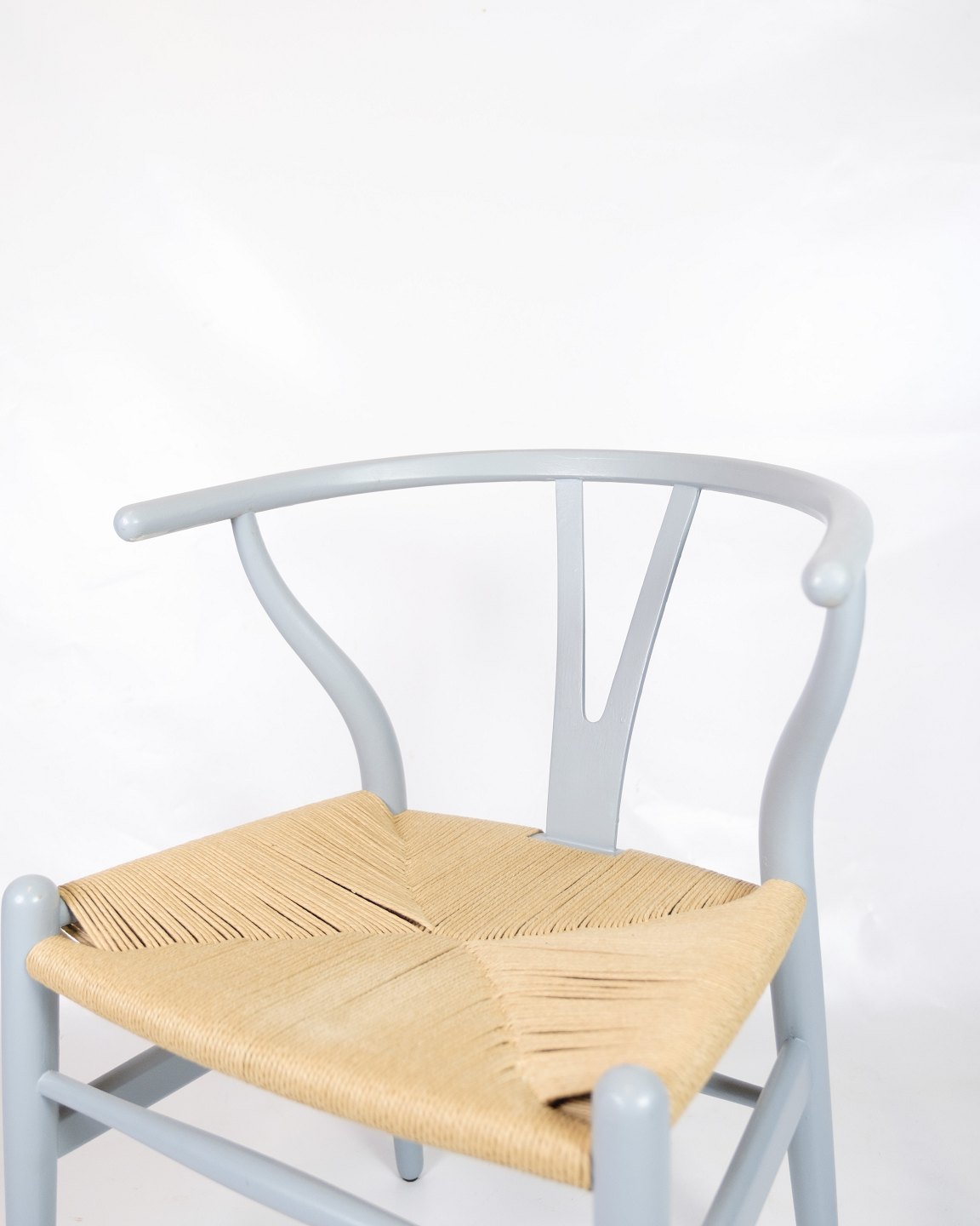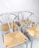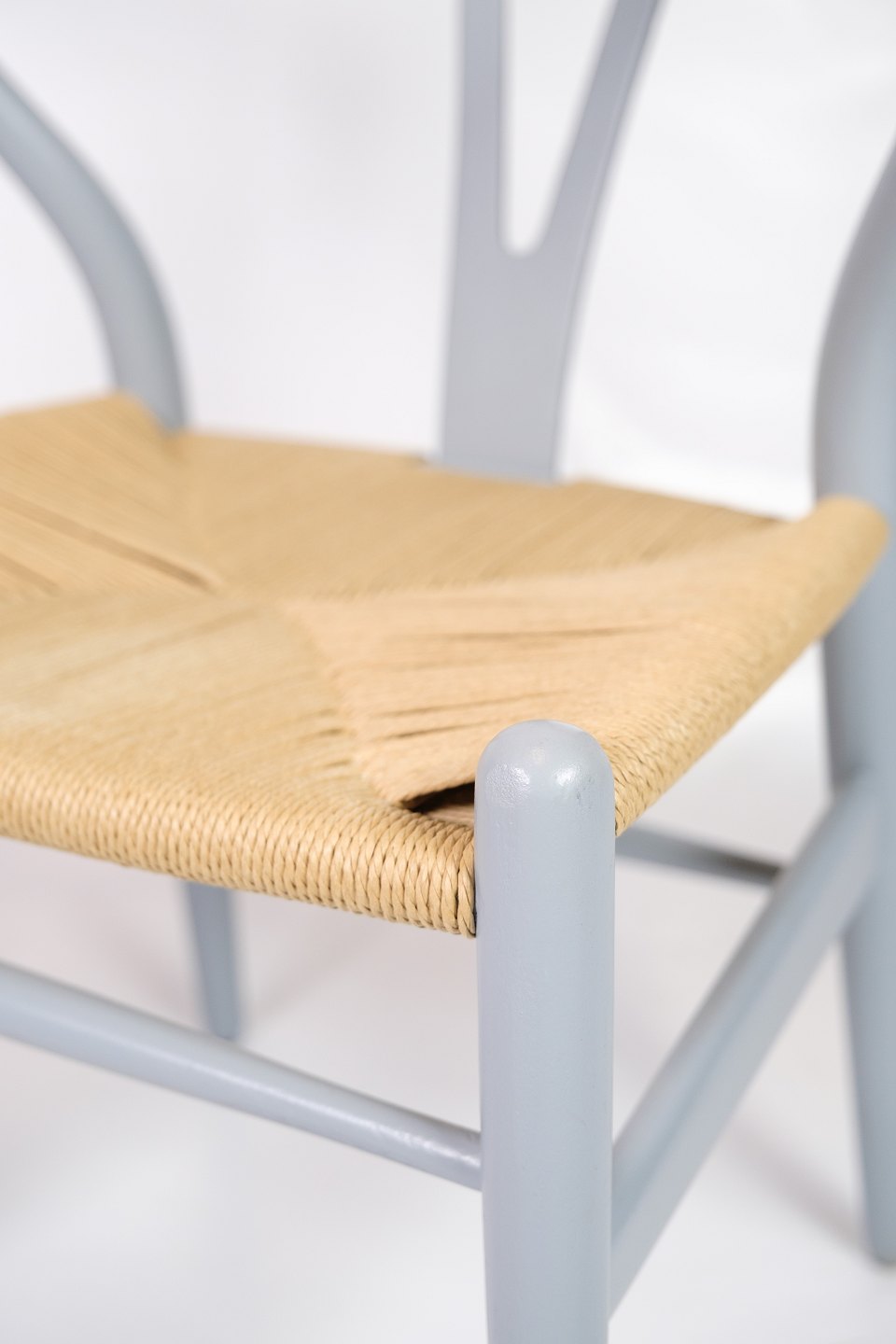 SolgtSæt af 4 Y-stole, model CH24, designet af Hans J. Wegner og produceret af Carl Hansen & Søn. Stolene er bemalet i en grå farve, der tilfører et moderne udtryk til det klassiske design. Y-stolen, også kendt som "Wishbone Chair", blev designet i 1949 og har været i produktion siden 1950.