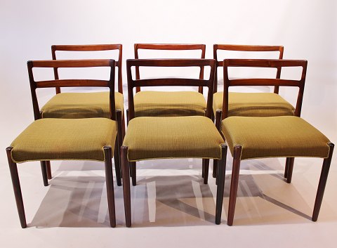 Et sæt safari-lænestole designet af Kaare Klint og fremstillet af Rud. Rasmussen. Stolene er udført i asketræ med sæde og ryg i brunt kanvas samt armlæn i kernelæder. Safari-stolene er kendt for deres enkle og funktionelle design, hvor fleksible materialer og aftagelige elementer gør dem både lette og praktiske.