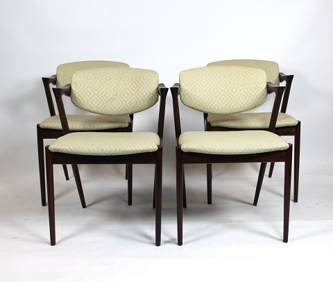 Sæt Af 2 Lænestol - Palisander - Sorte Læder Hynder - Hans Olsen - Brdr. Juul Kristensen - 1960erne