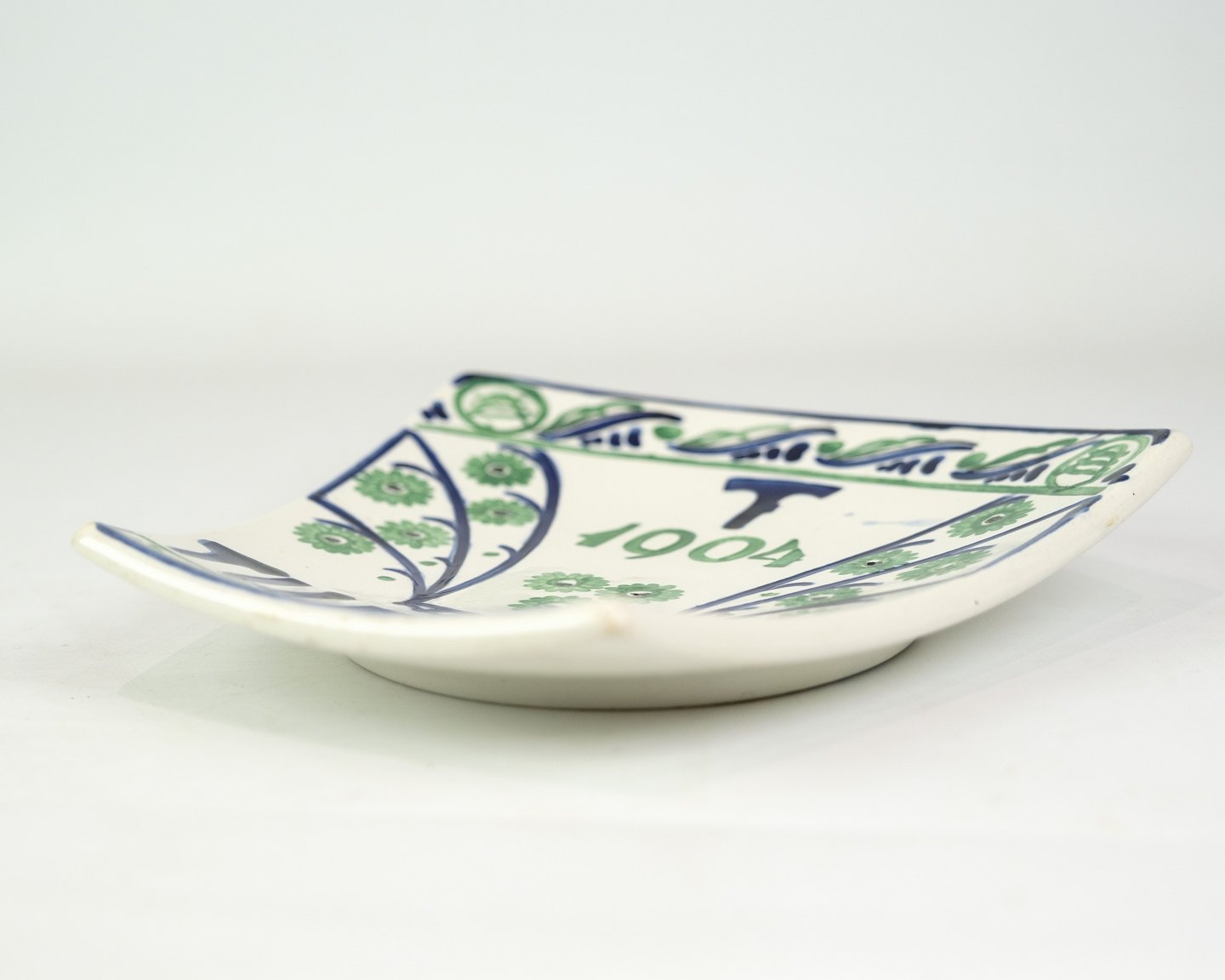This 1904 brewery plate is made of earthenware by Aluminia and designed as a tribute to the Tuborg Breweries. The plate is decorated with classic brewery motifs and bears the hallmarks of the Aluminia factory's characteristic craftsmanship and artistic details.