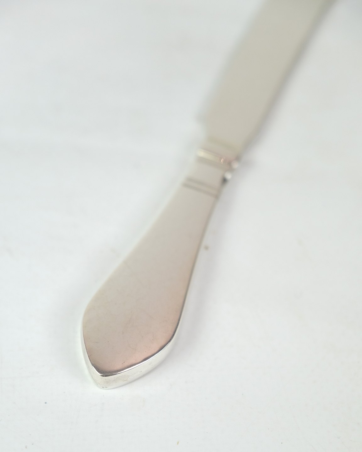 Denne smørkniv fra Continental-serien er fremstillet i sterling sølv af Georg Jensen. Med sit tidløse design og velafbalancerede form er den ideel til servering af smør, pâté eller bløde oste, hvilket gør den både funktionel og stilfuld på ethvert bord.