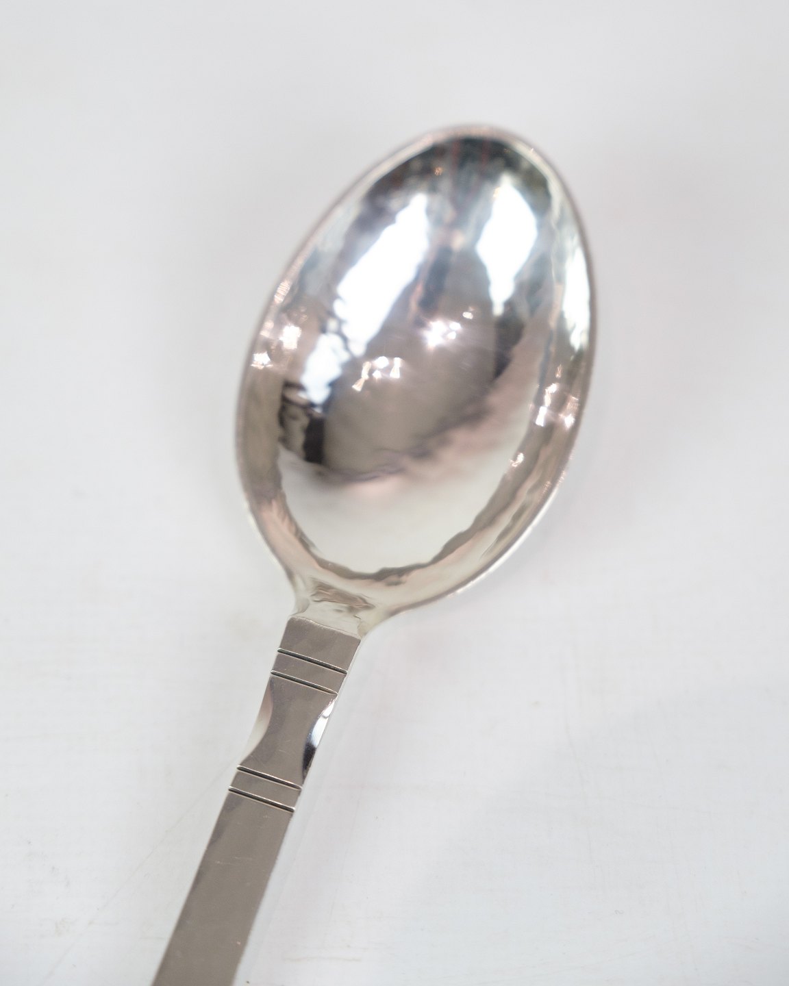 This dessert spoon from the Continental series is made of sterling silver by Georg Jensen. With its timeless and functional design, the spoon is ideal for serving desserts and small dishes, where classic elegance and quality are in focus.