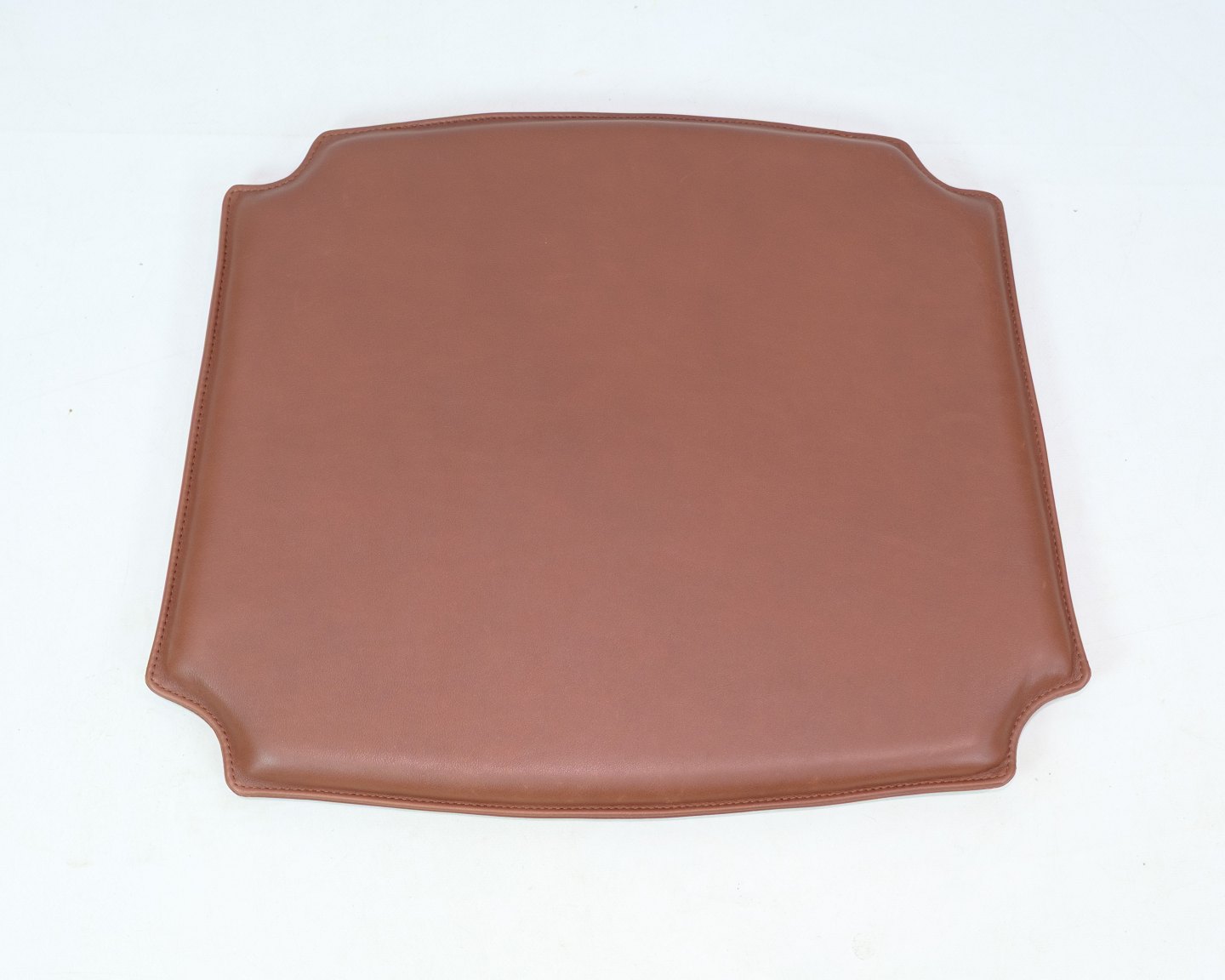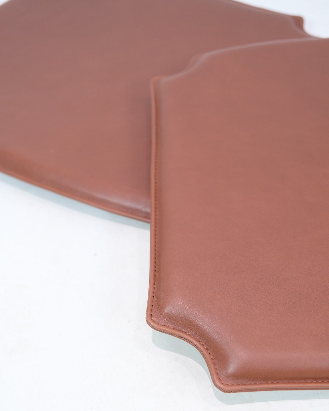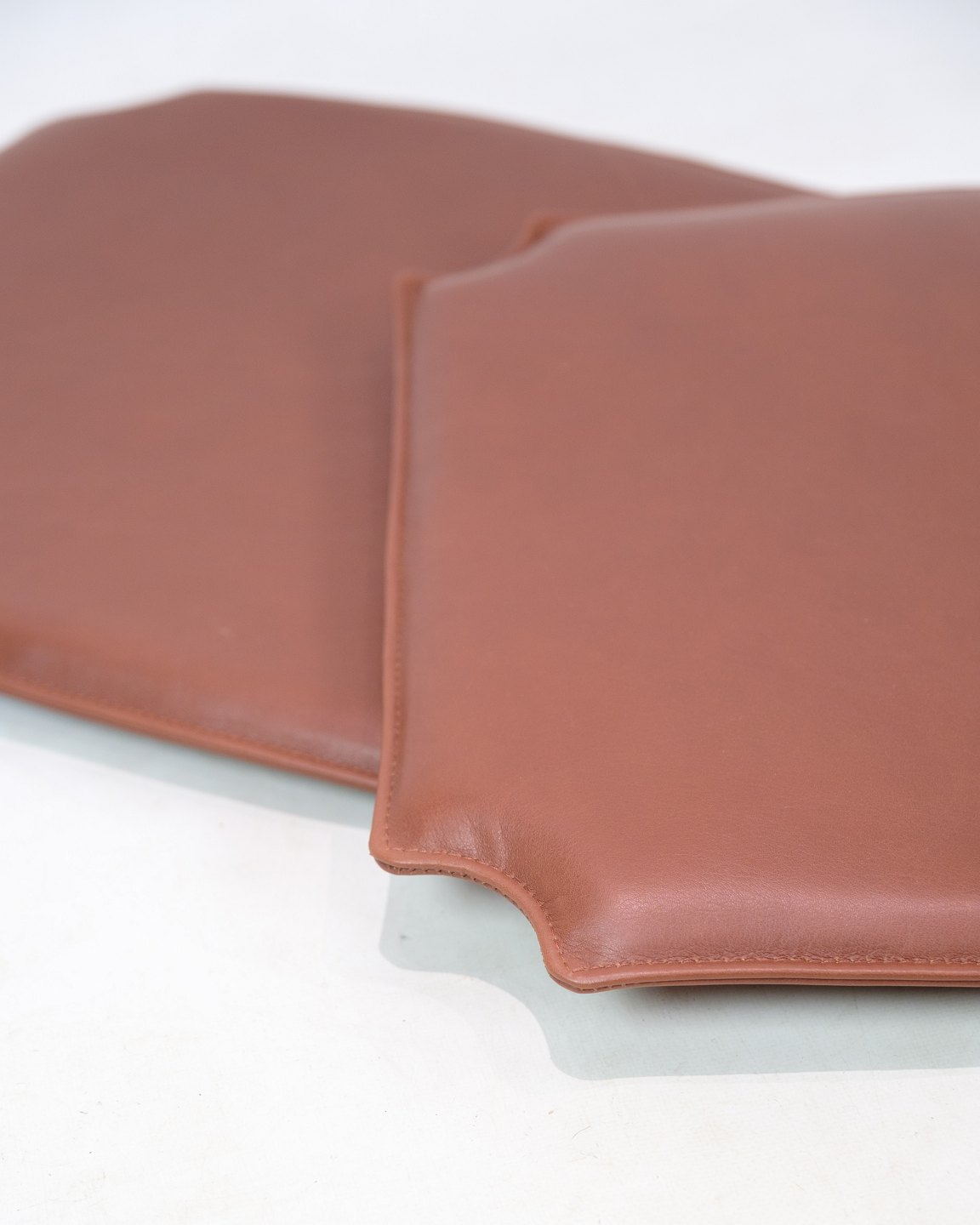 Set of 2 cushions in cognac leather, adapted from Hans J. Wegner's CH24 Y-chair. The cushions increase comfort and protect the seat of the chair.