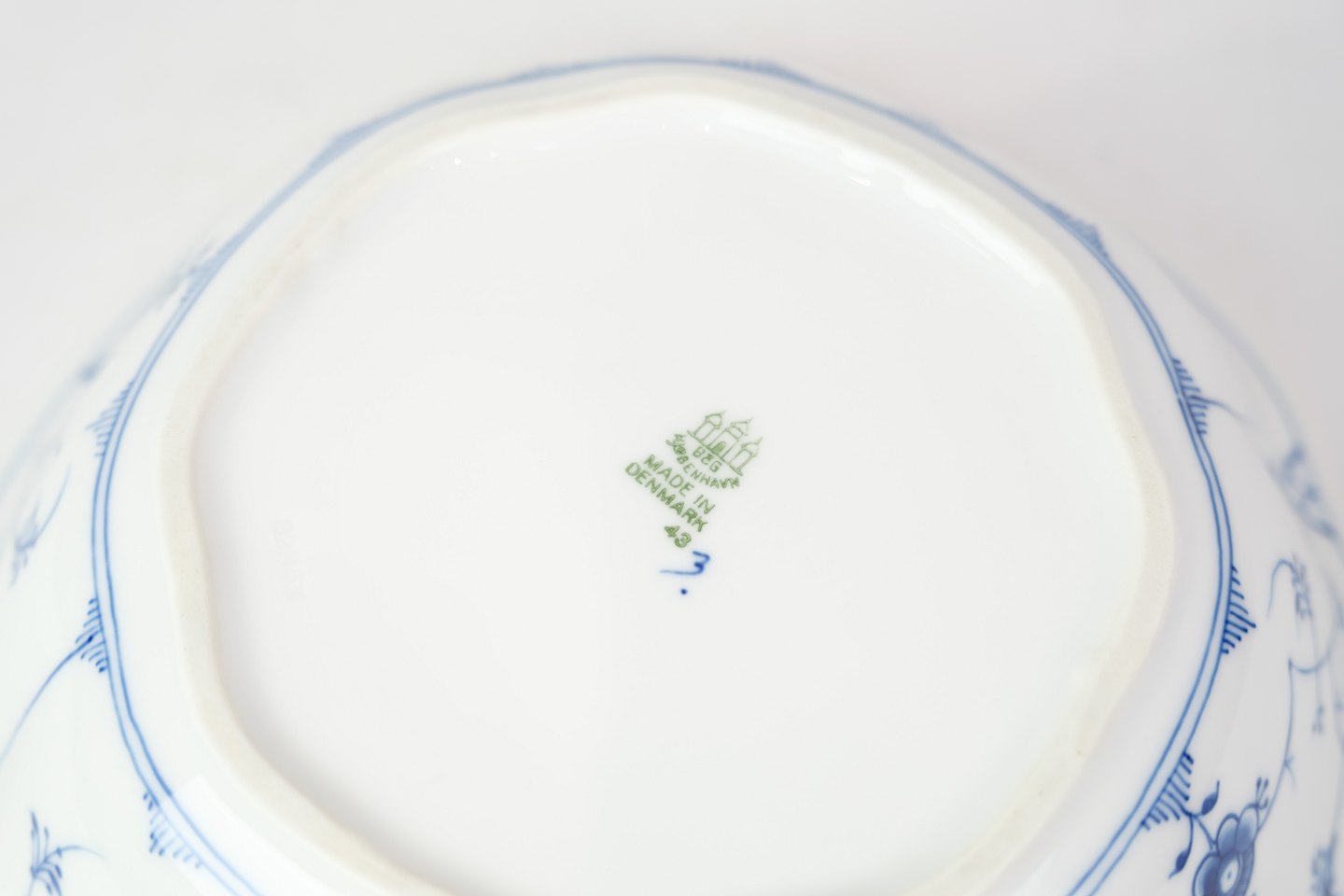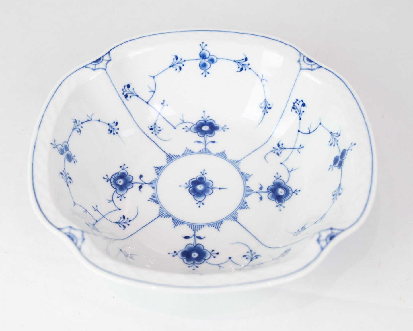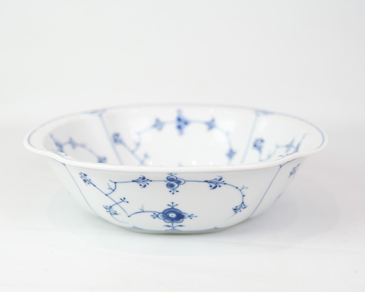 Potato bowl no. 43 from Bing & Grondahl. Made of porcelain with classic blue painted blue fluting decoration.