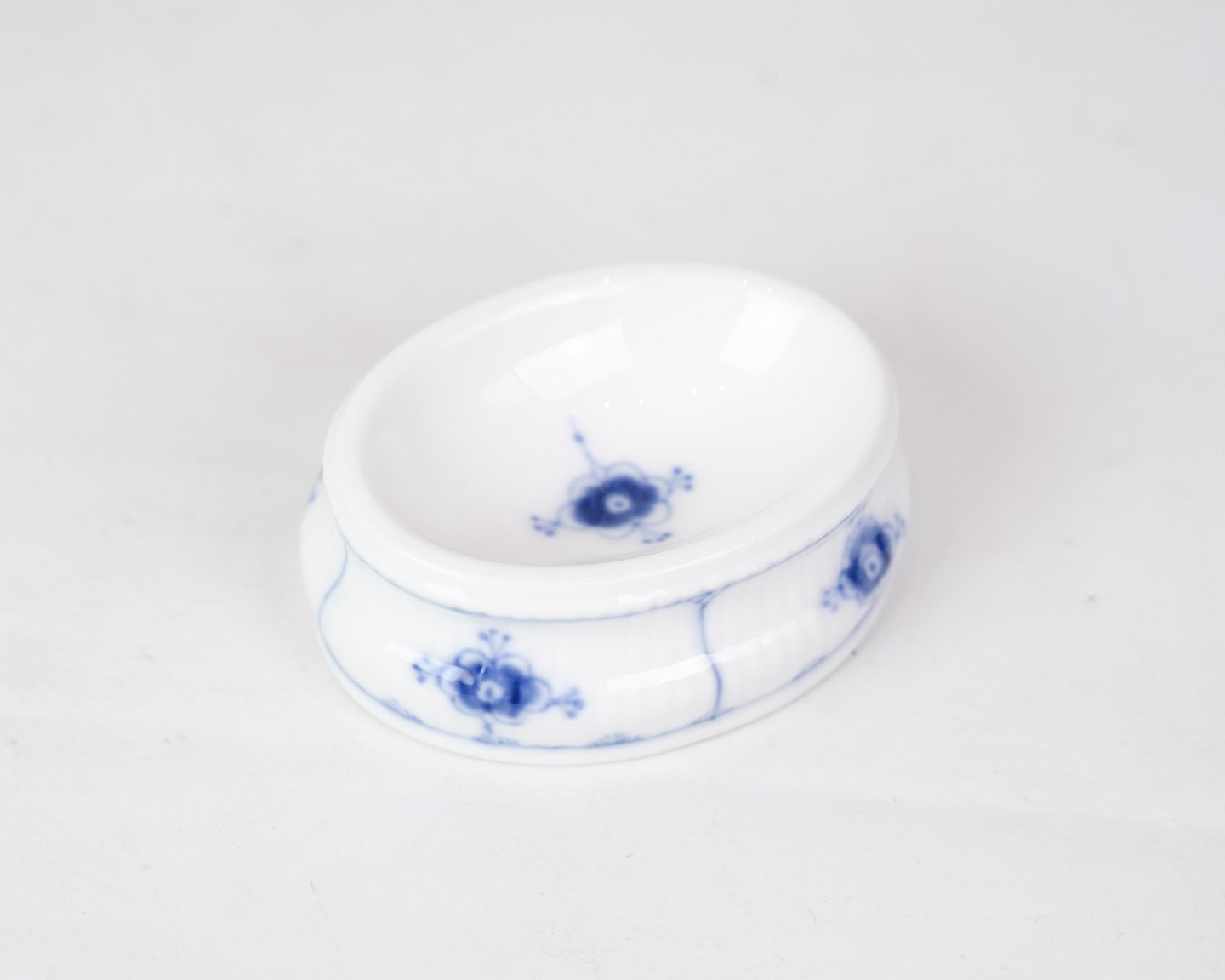 Oval salt cellar marked no. 1/195 from Royal Copenhagen. Fluted blue fluting design in hand-painted blue decoration.