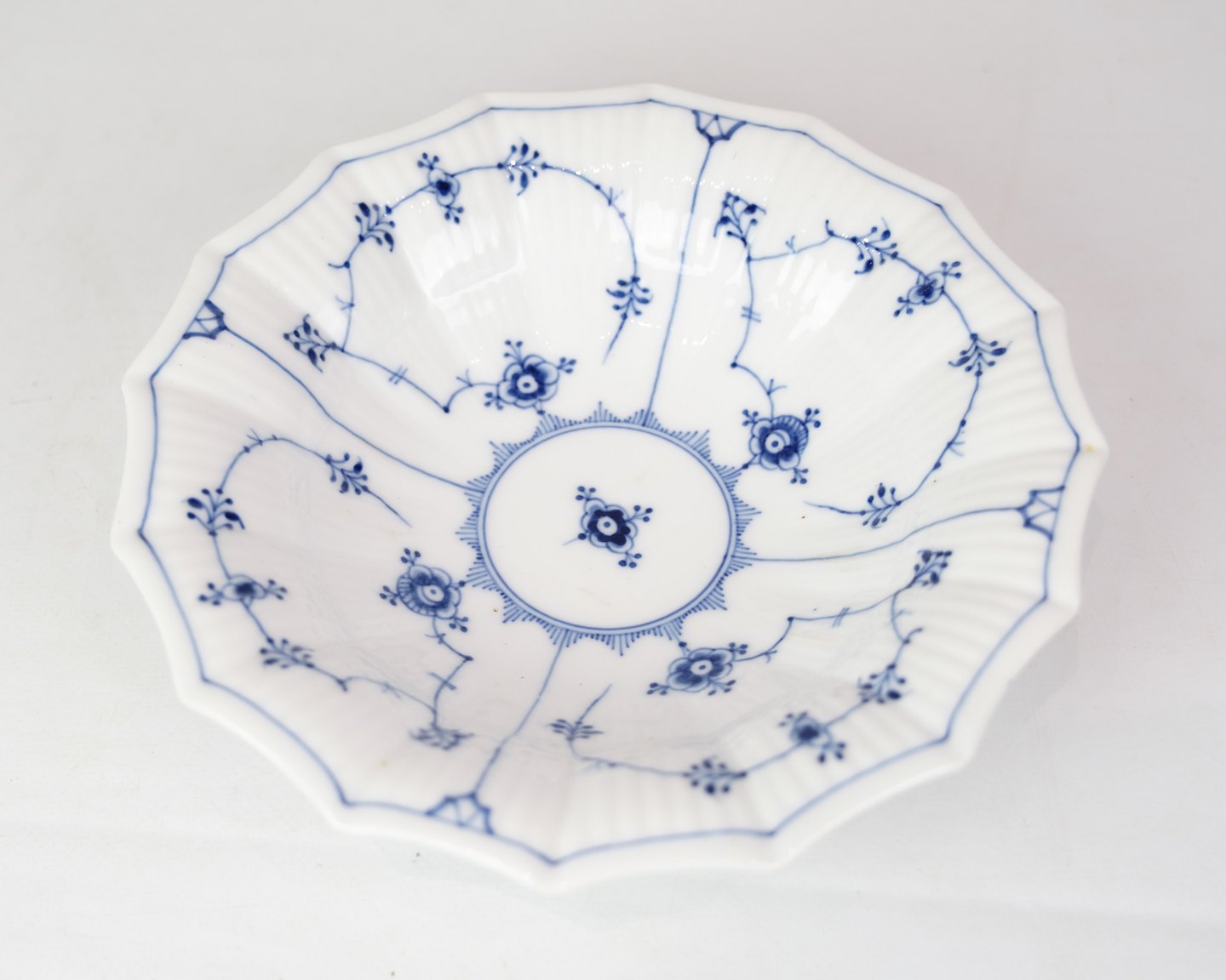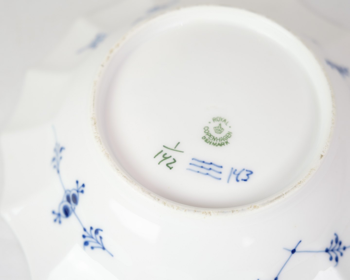 RC Bowl marked 1/142 from Royal Copenhagen. The bowl is made of porcelain in a blue fluted design. Hand painted in blue decoration.