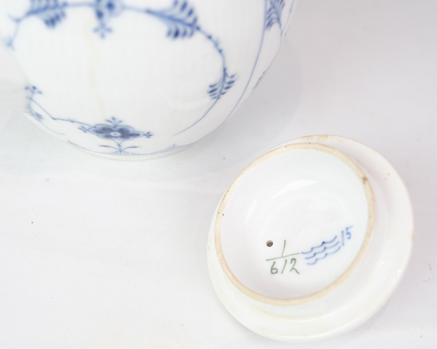 SolgtStor Tekande med mønstret Musselmalet Riflet af Royal Copenhagen model nr. 612. Står med flot blå håndmalet mønster.