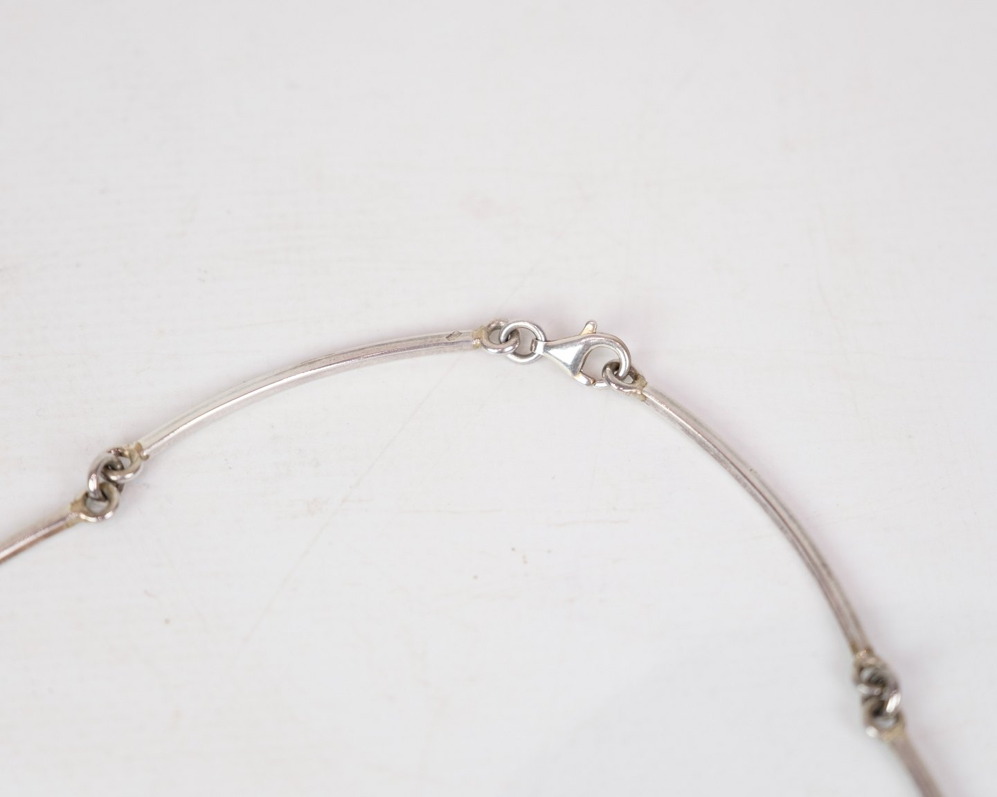 SolgtHalscollier fra 1950’erne i sterling sølv 925 med stor, gul ravsten som midtpunkt.