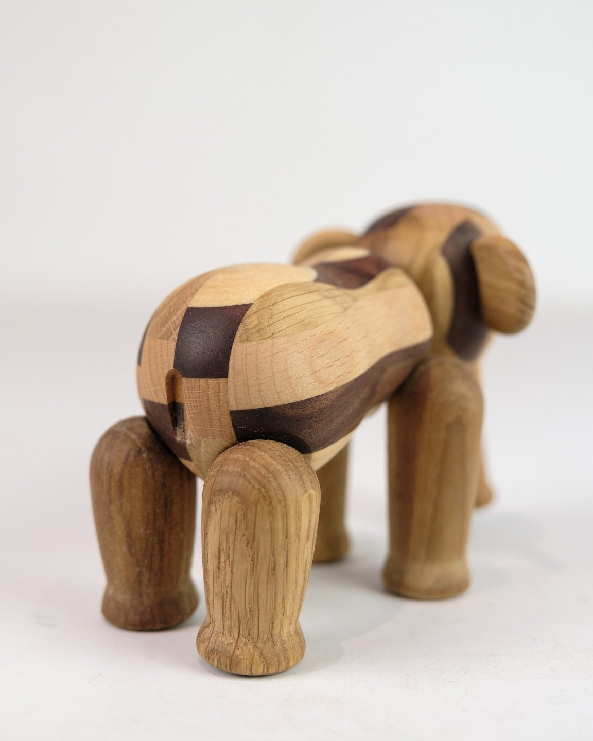 Kay Bojesen Reworked Mini elefant jubilæums model fra 2023 som fejring af 70-års jubilæum. Elefanten er en særudgave som er en del af reworked familien. Elefanten er udført i flere forskellige træsorter heriblandt teak, valnød, eg, ask & ahorn. Reworked udgaven er en del af Kay Bojesens svar på upcycling og genbruge det som ikke ville blive brugt, for også at minimere ressourcespild.