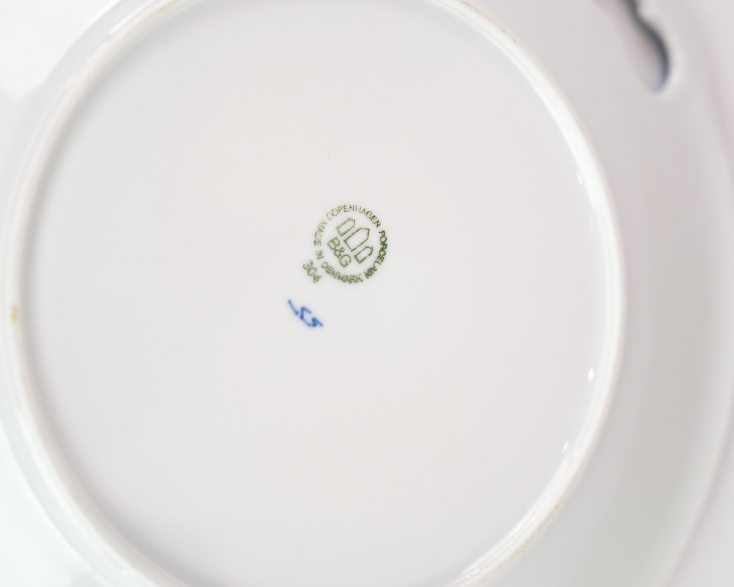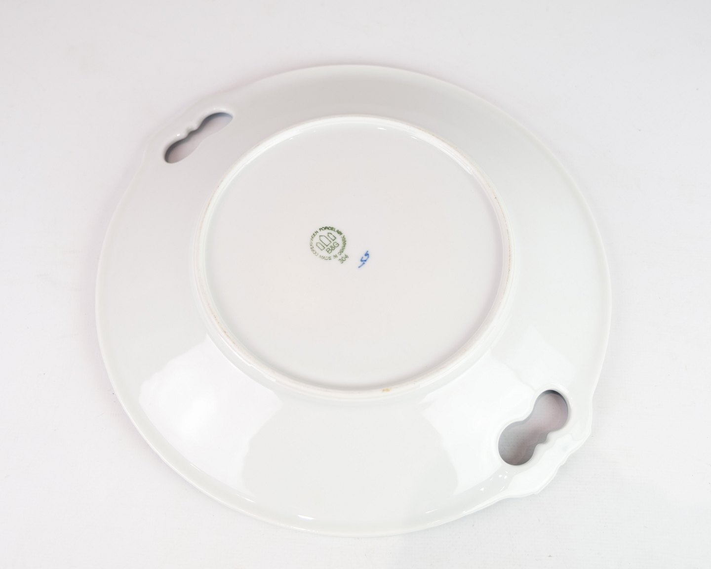 Round cake plate with handle, model no. 304, from Bing & Grondahl. Decorated with Butterfly motif. Porcelain with printed stamp under the base. Suitable for serving or collecting.