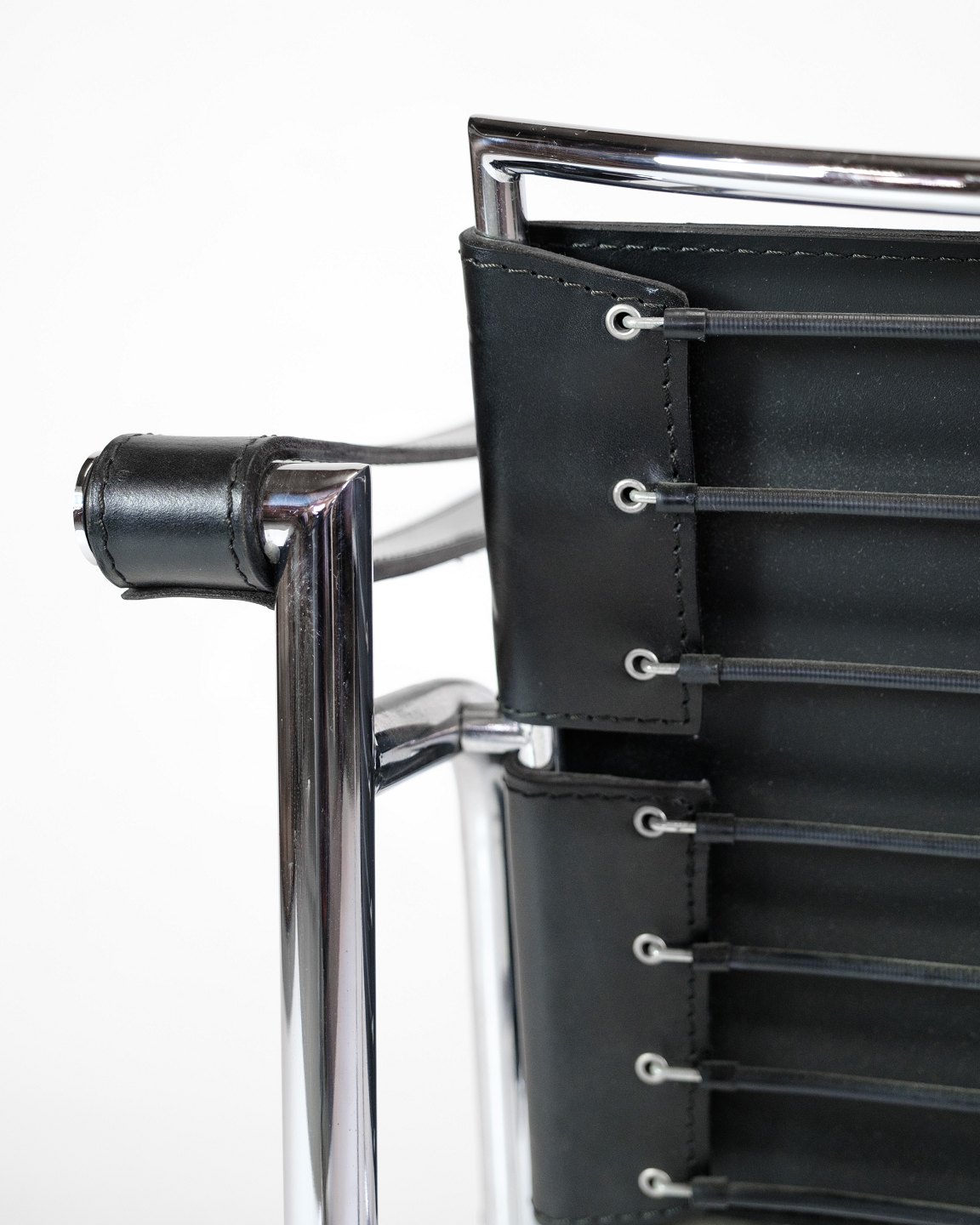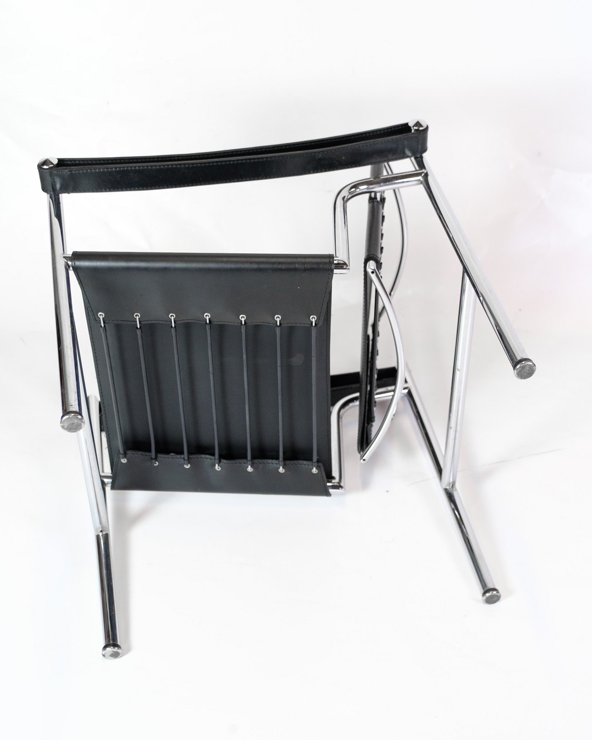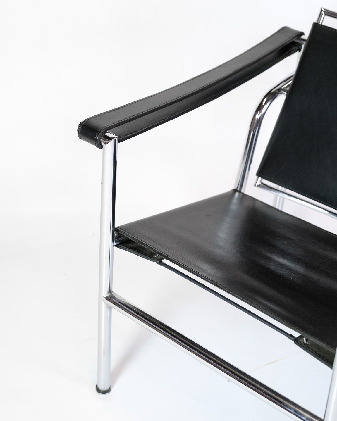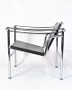 SolgtEt par klassiske lænestole i sort kernelæder med stel af krom. Model LC1 er designet i 1928 af Le Corbusier. Stolens ryglæn er justerbart. De står i meget flot stand i både krom og læder.
