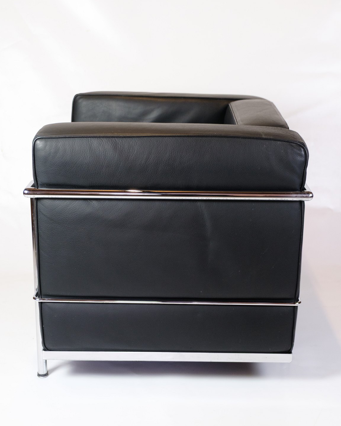 Le Corbusier Lænestol - Model LC2 - Ramme Af Forkromet Stålrør - Sort Læder - Le Corbusier - Cassina