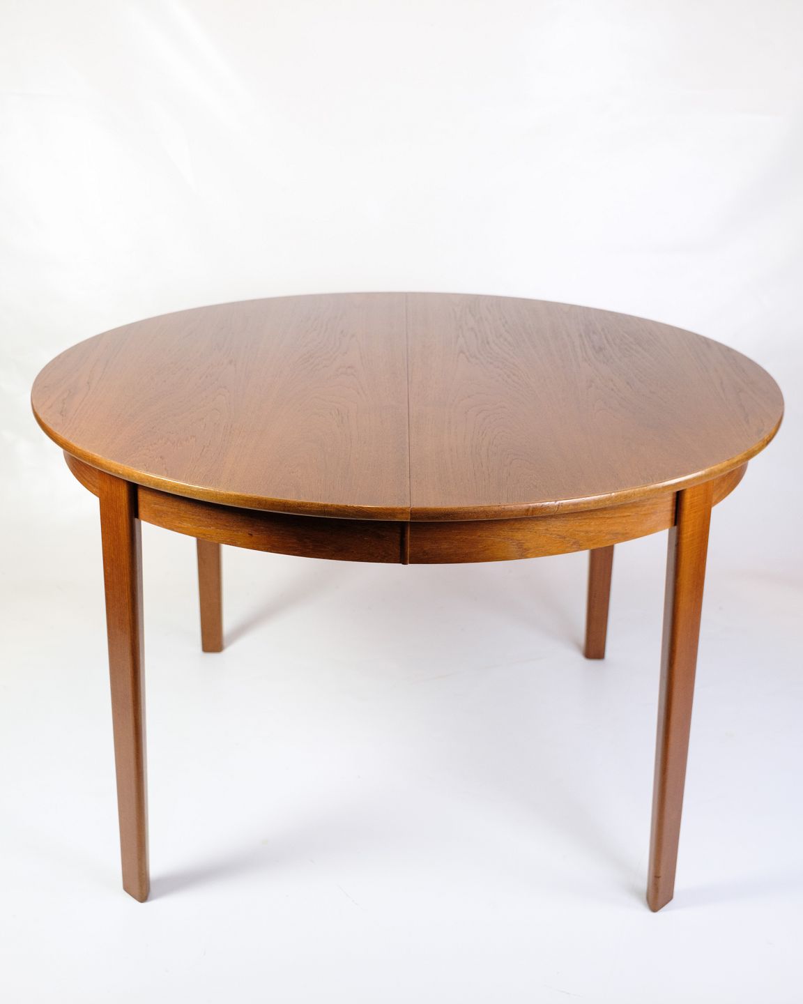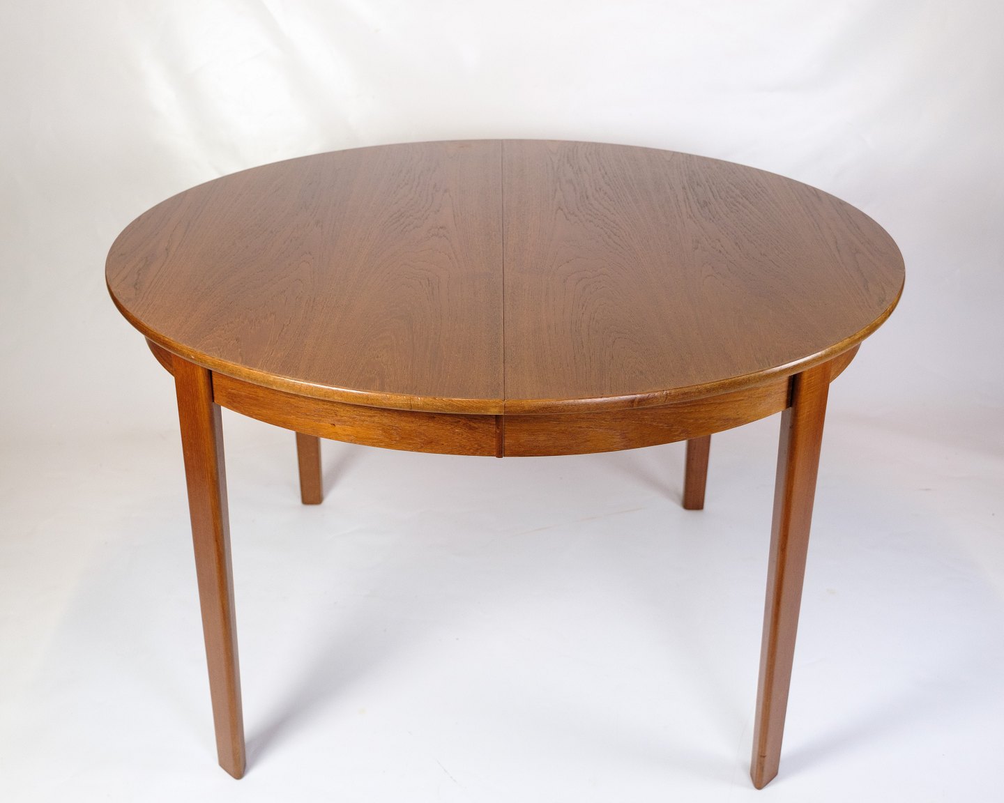SoldRound teak dining table with four extension leaves, made in Denmark in the 1960s. The table can be extended with up to four leaves, which is rare and provides great flexibility.