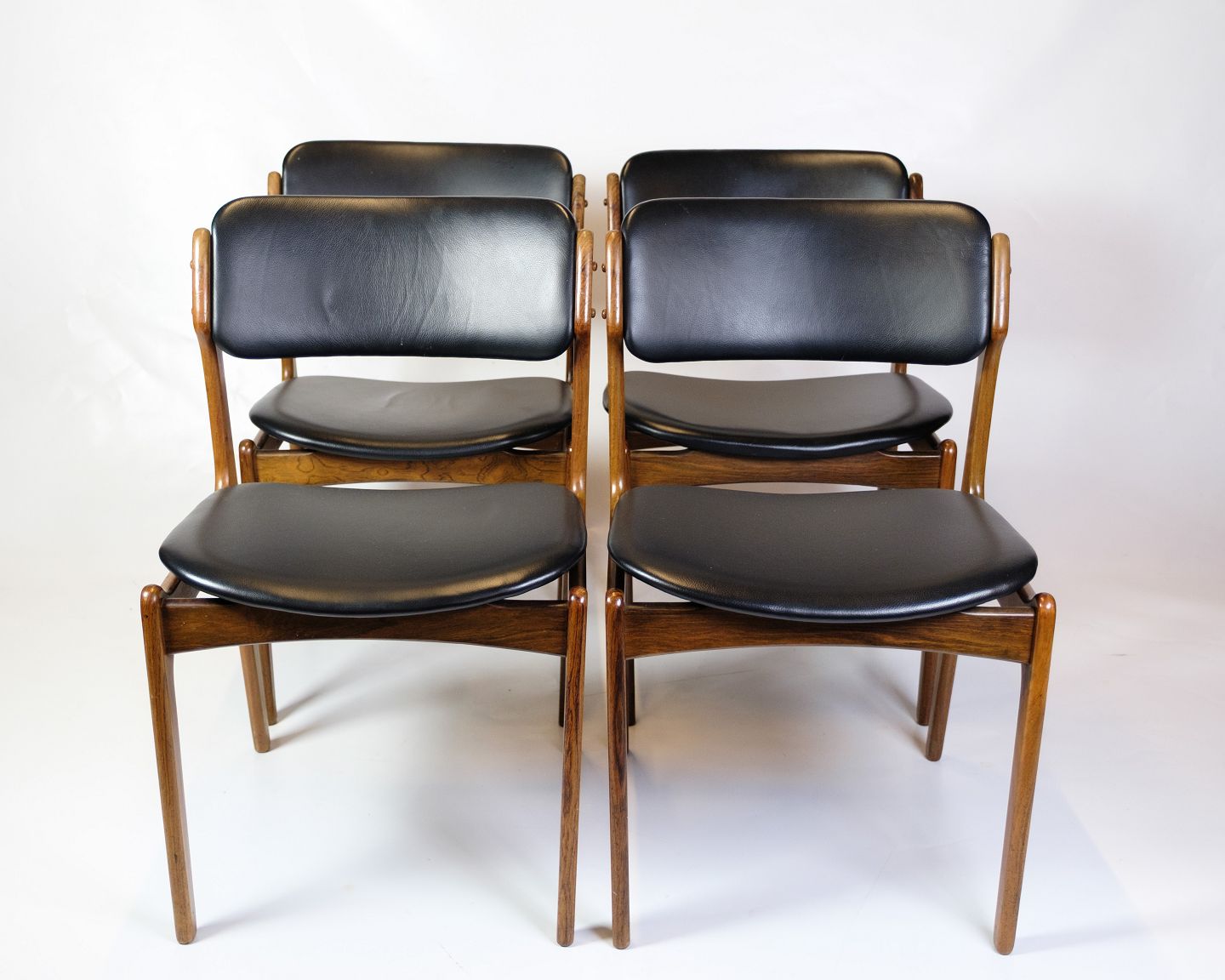 Set of Four Dining Chairs - Model OD 49 - Rosewood and Black Leather - Erik Buch - O.D Furniture - 1950s