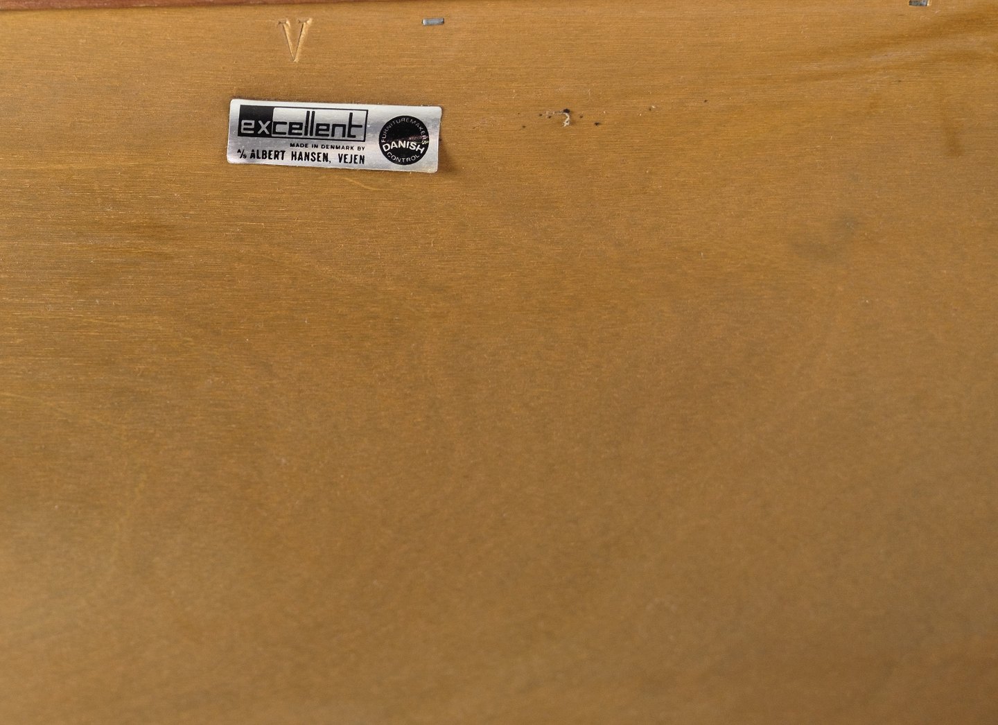 wall-mounted chest of drawers in rosewood, designed by Albert Hansen in the 1960s as part of the Model Excellent series. The three drawers have distinctive, milled handles and a rectangular shape. A fine example of Danish design, where function and aesthetics meet in a light and floating form.
