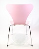 Sæt på 6 Syver-stole model 3107 i en lyserød lakering. Designet af Arne Jacobsen og fremstillet af Fritz Hansen.