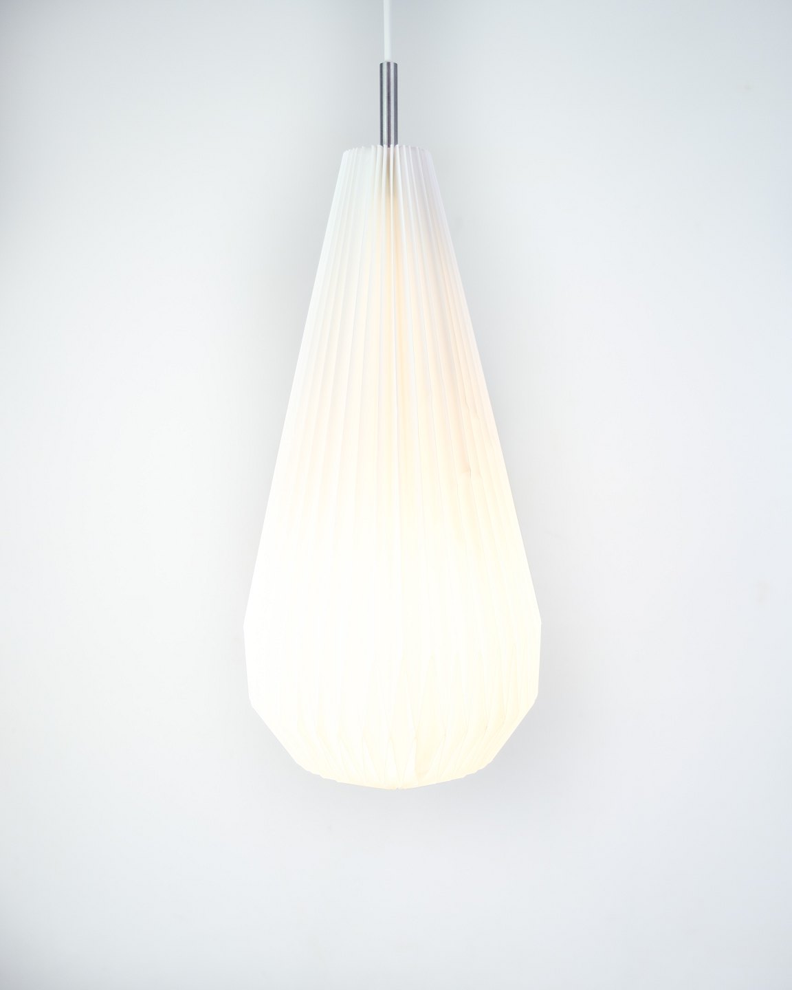 Sculptural pendant lamp from Le Klint, model 181 "Komet", designed by Poul Christiansen in 2003. The hand-folded shade in white plastic forms a teardrop-shaped silhouette, which spreads a soft, pleasant light without glare.