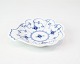 Asiet i det klassiske musselmalede mønster fra Royal Copenhagen. Denne lille serveringsskål, model nr. 2013, er håndmalet og stammer fra perioden 1923–1935, hvilket bekræftes af stempel. Formen er let ovalt buet og har det karakteristiske blå-hvide porcelæn.