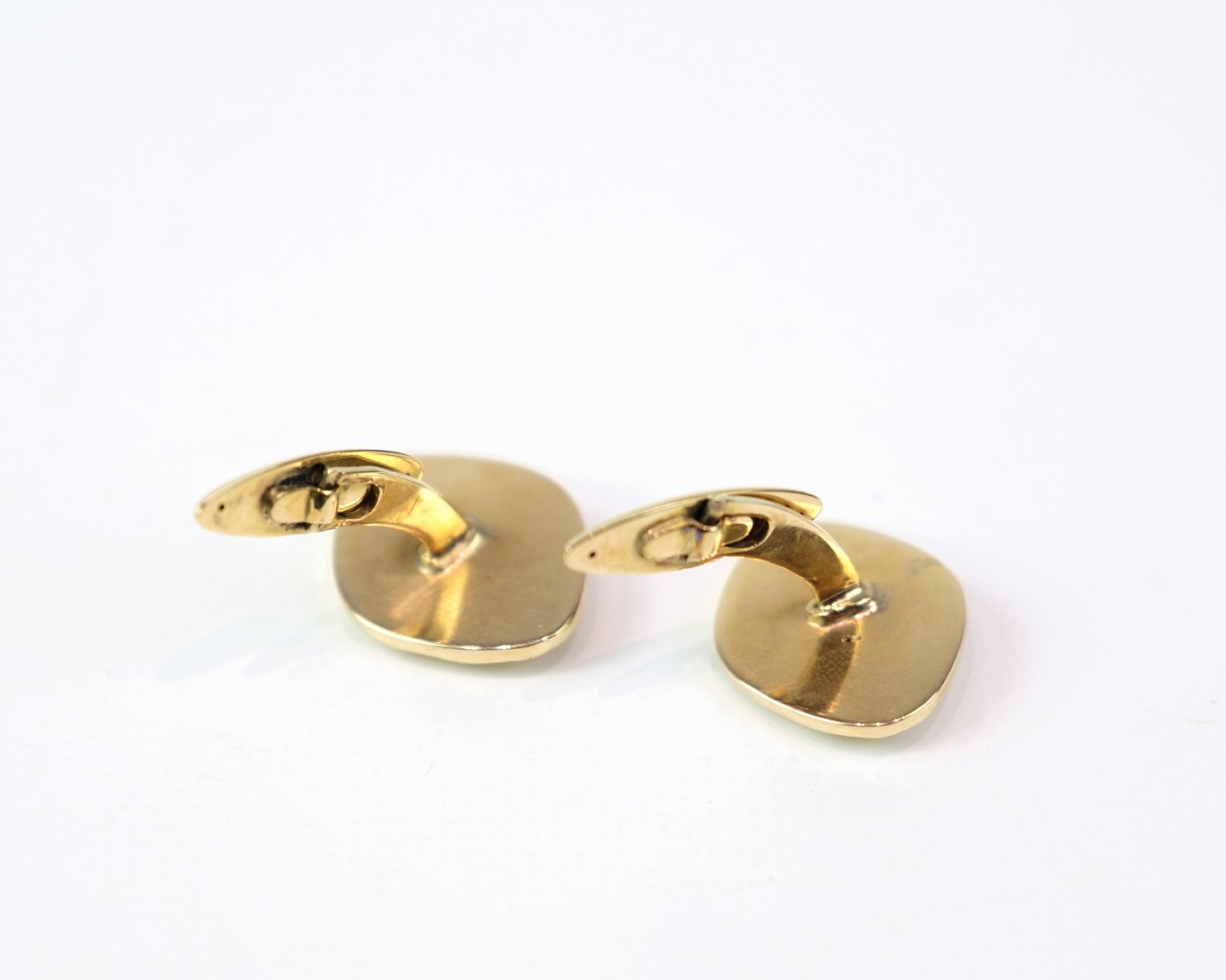 Manchetknapper i 14 kt. guld, stemplet 585. Rillet design. L: 2 cm, Dia: 1,5 cm. Vægt: 6,7 g. Klassisk herresmykke.