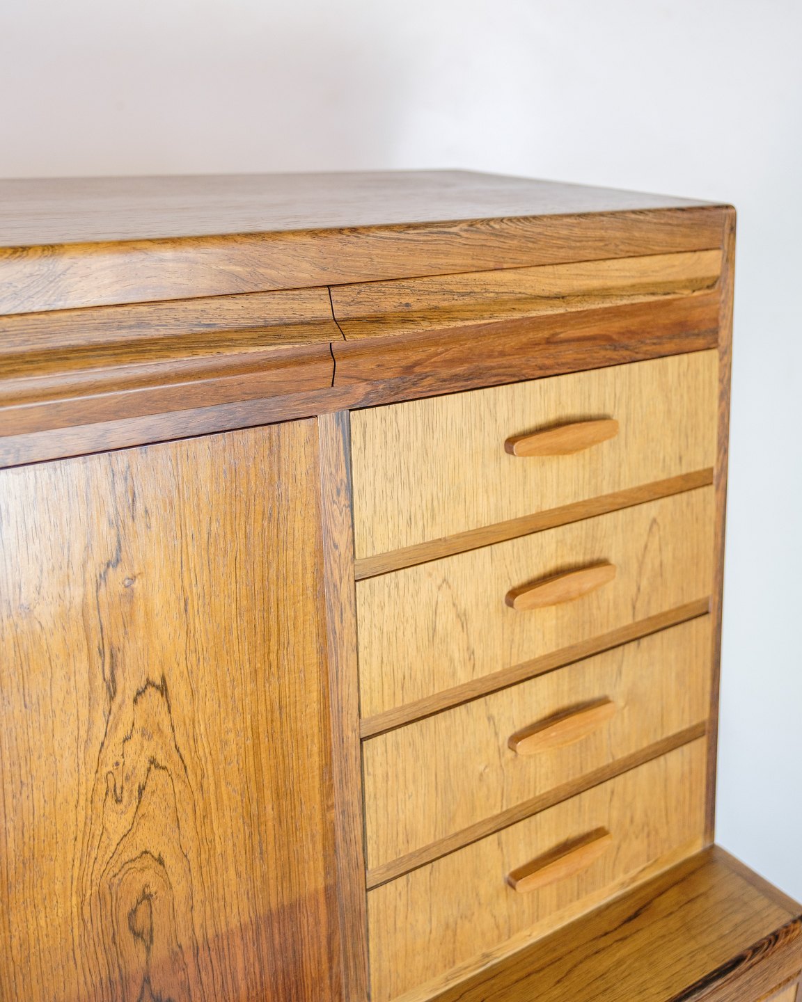 Chatol designet af Erling Torvits og udført i palisander. Øverste del åbnes med en klaplåge og med indbygget skuffer, åbne rum, brevhylder og tre integrerede “hemmelige” skuffer i topsektionen. Nederst seks rummelige skuffer med formpressede greb.