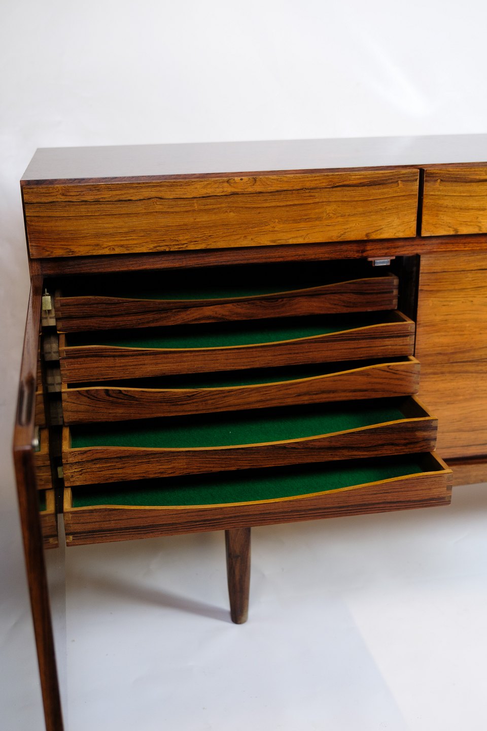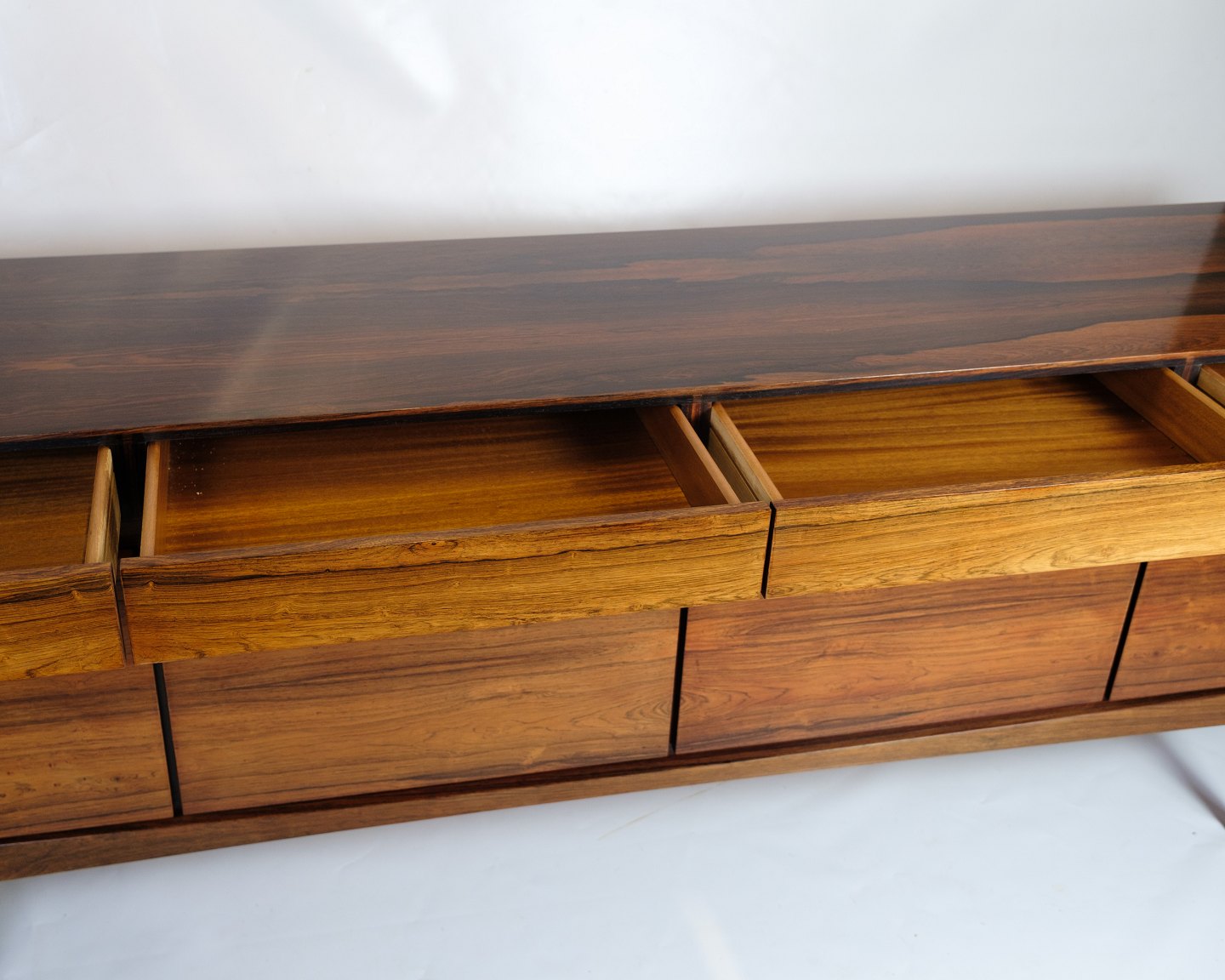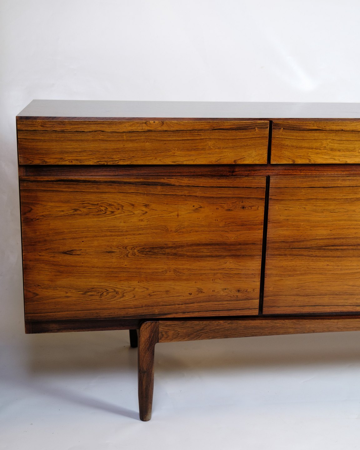 Please contact us for price informationSideboard designed by Ib Kofod-Larsen, model FA66, produced by Faarup Møbelfabrik in the 1960s. The sideboard is made of rosewood with a beautiful grain pattern and a front with four sliding doors and a drawer section behind one door.
