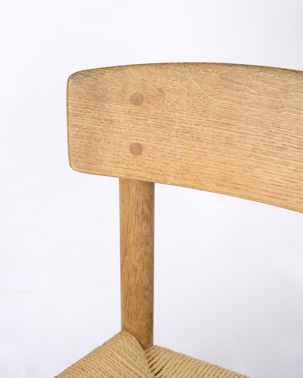 Set of two dining chairs, model J39, also known as the Folkestolen. Designed by Børge Mogensen in 1947 and produced by FDB Møbler. The chairs are made of solid oak with seats in paper yarn weave, which provides a robust and comfortable seating experience.