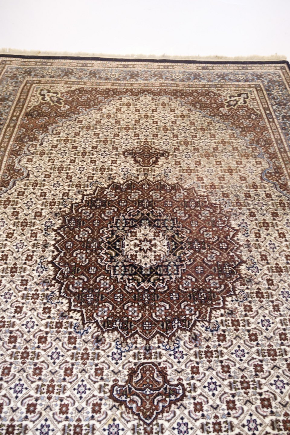 Genuine hand-knotted oriental rug in brownish and light shades. Classic pattern, 300x200 cm. Beautiful and timeless oriental design.