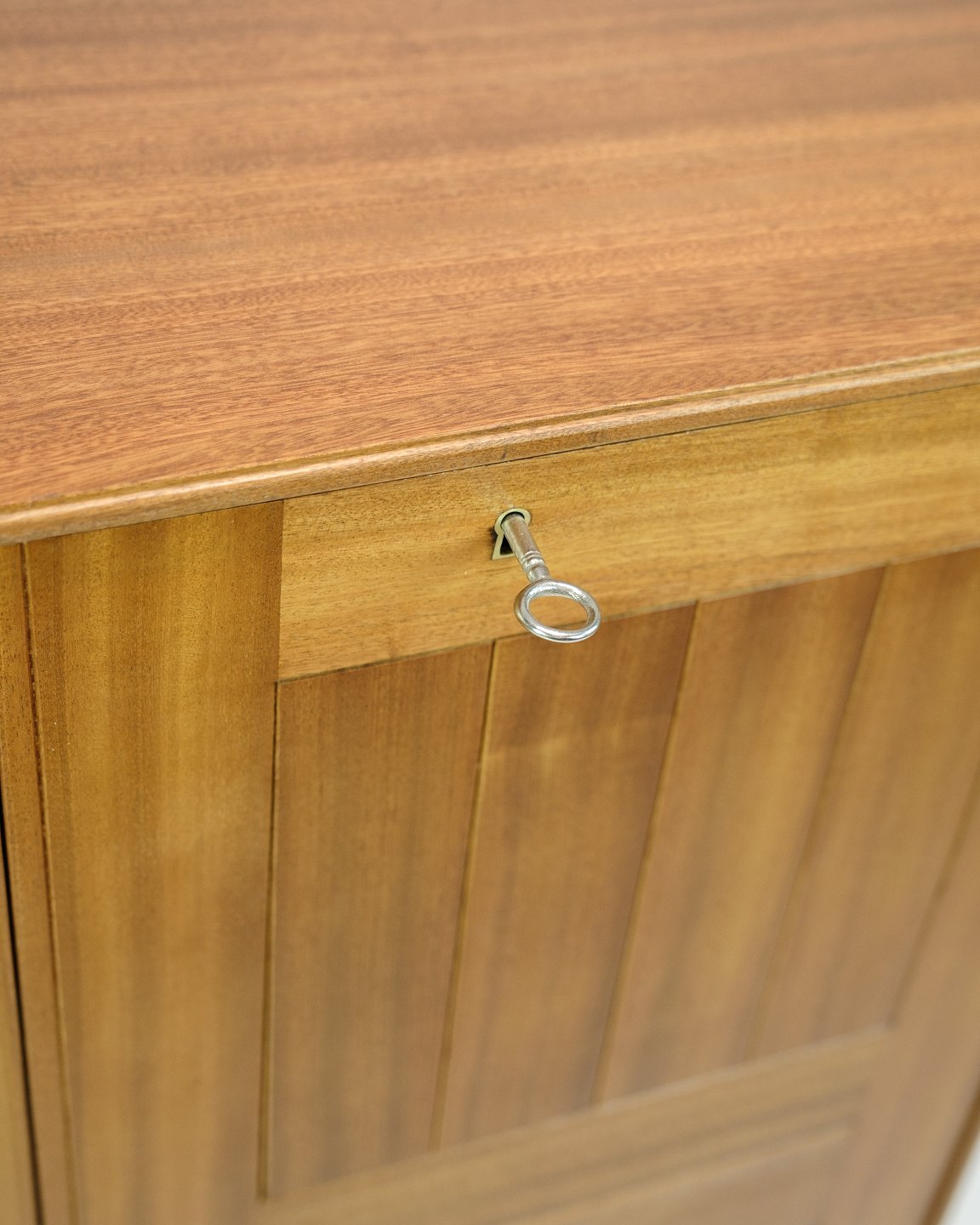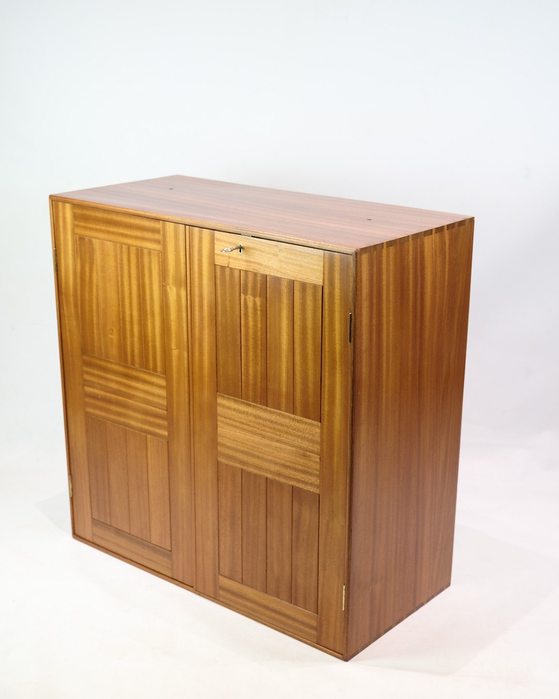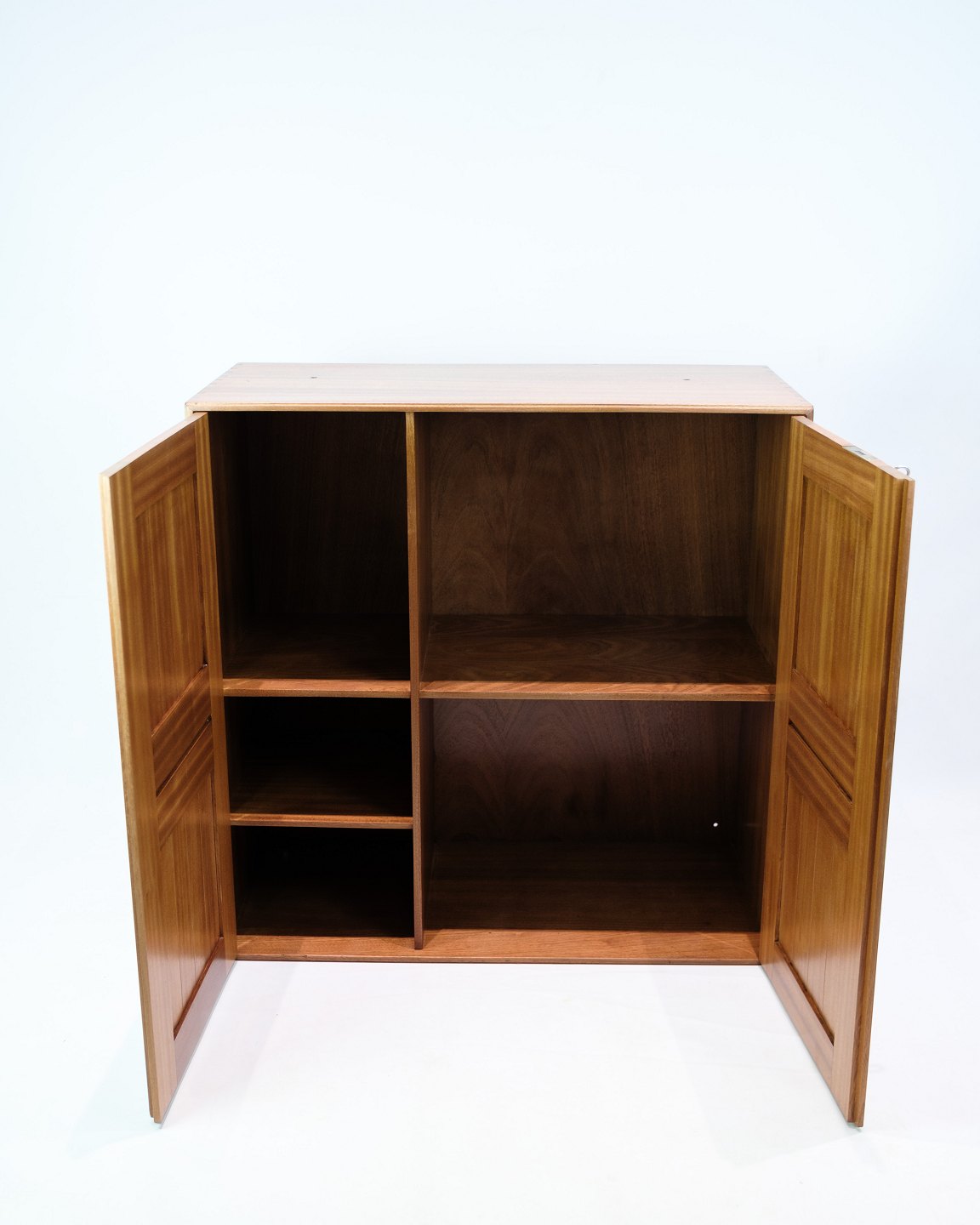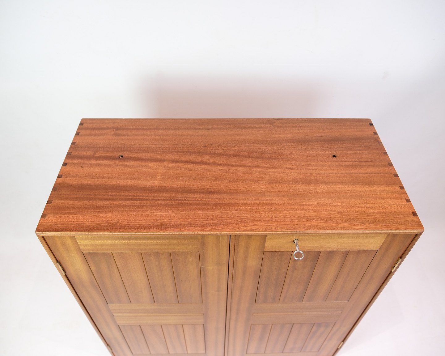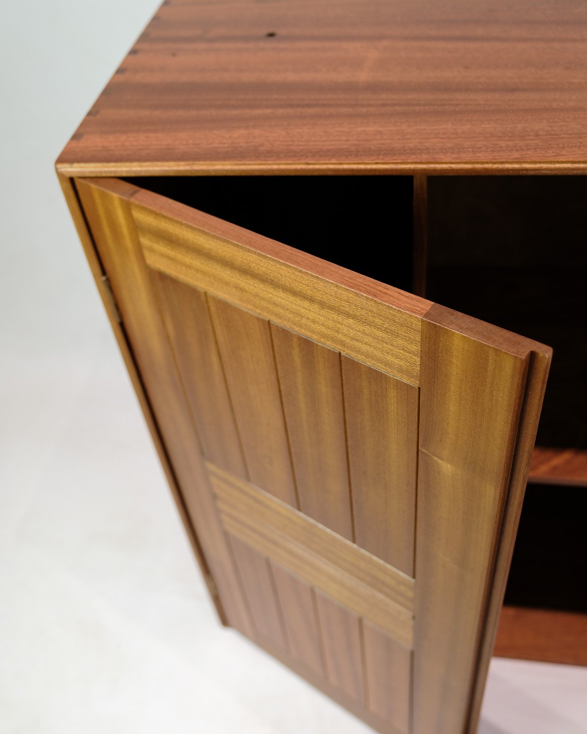 Klassisk skab i mahogni, designet af Mogens Koch og produceret af Rud. Rasmussen i 1970’erne. Skabet har to låger med indvendige hylder, hvilket giver praktisk og fleksibel opbevaringsplads.