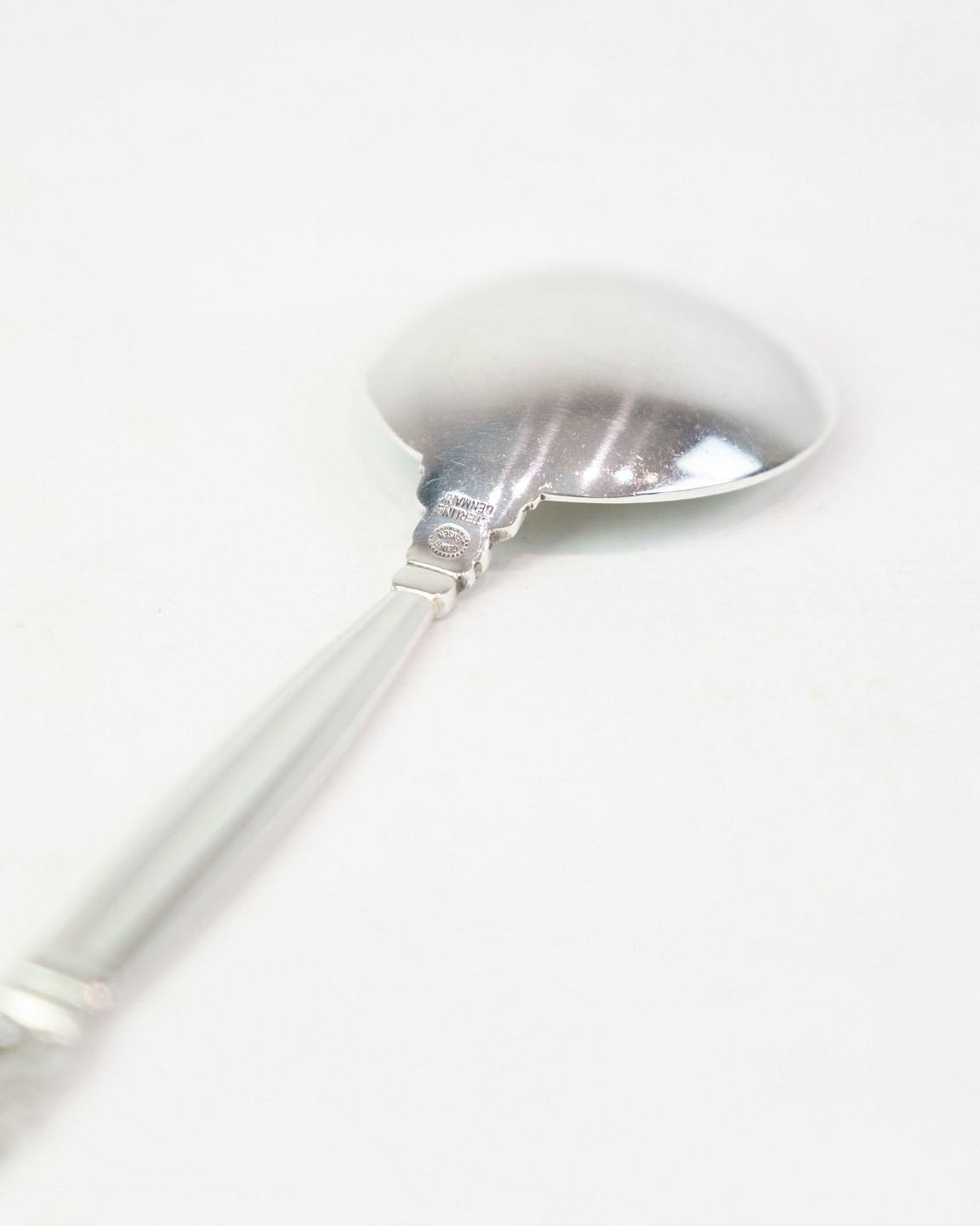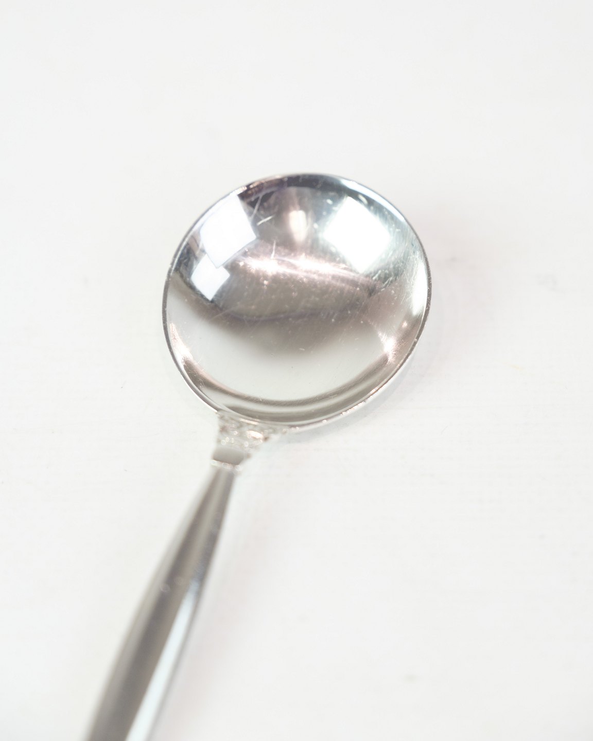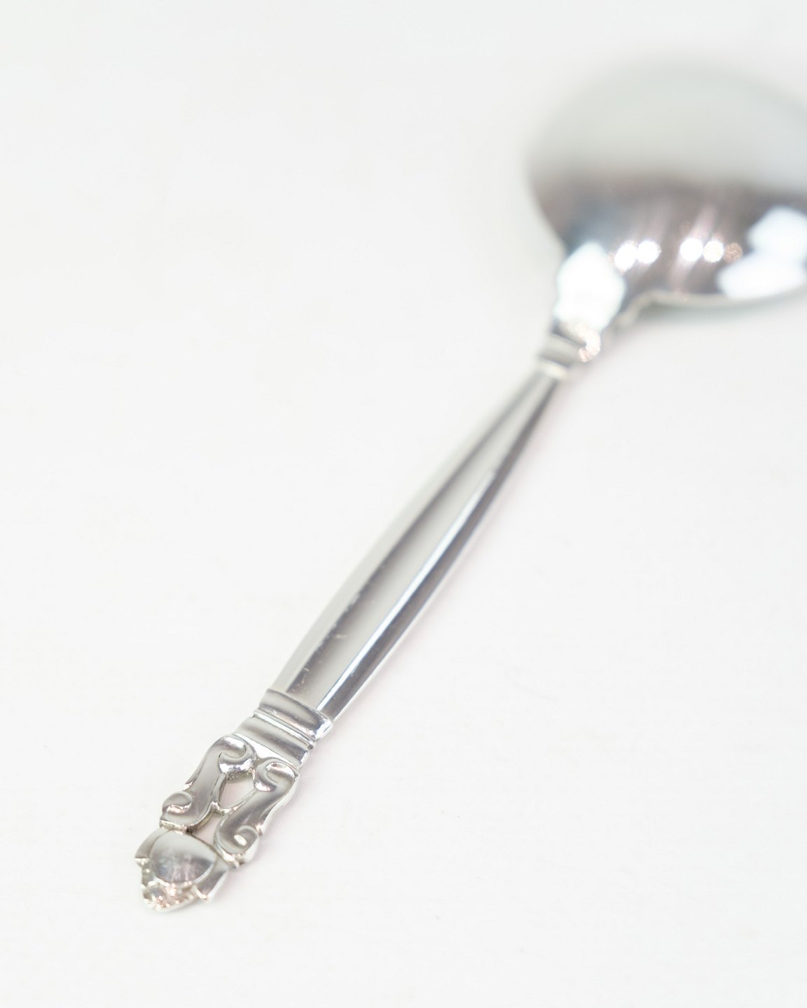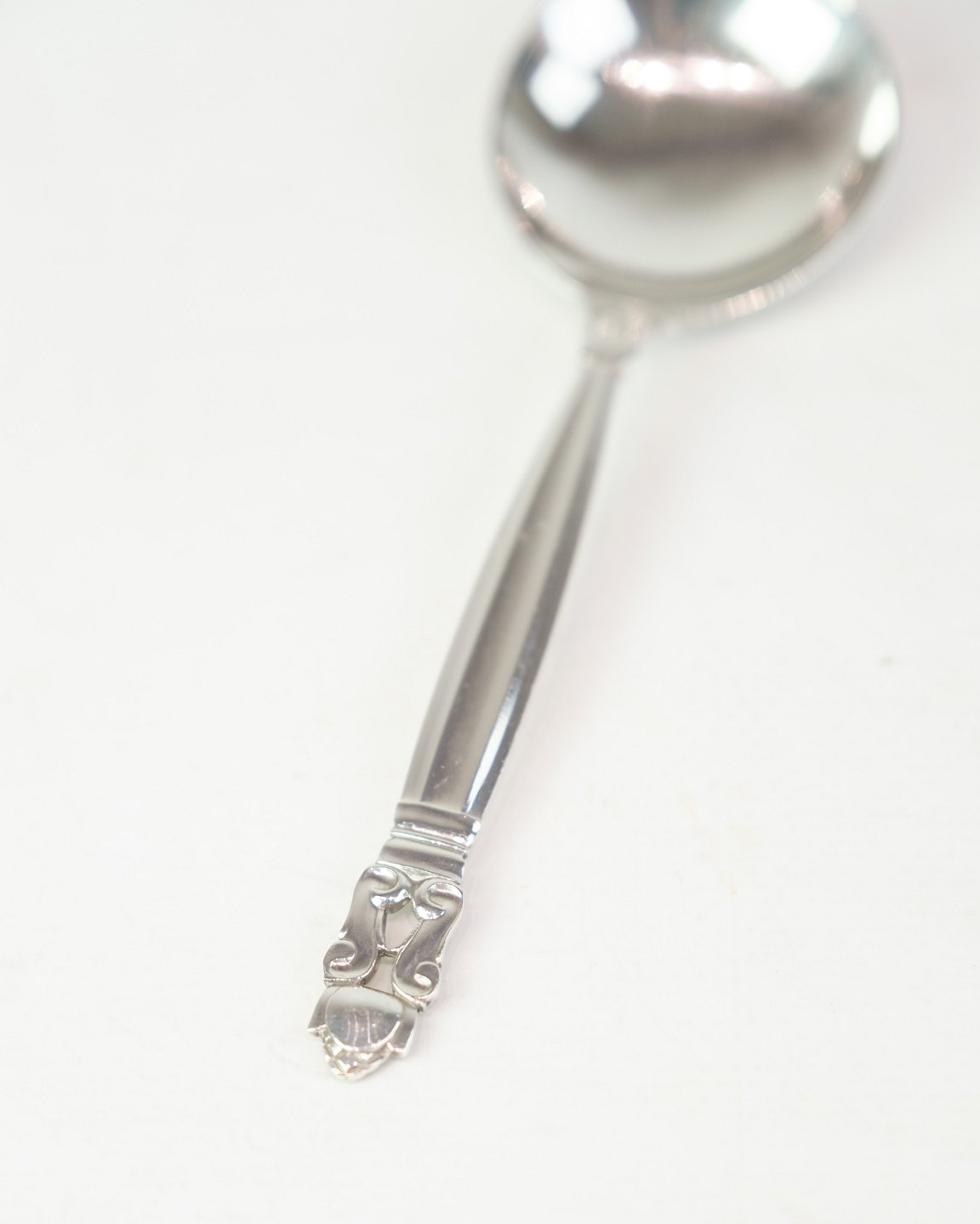 Georg Jensen small silver bouillon spoon, King pattern. Designed by Johan Rohde in 1915. Length 13 cm. Classic Danish silverwork.