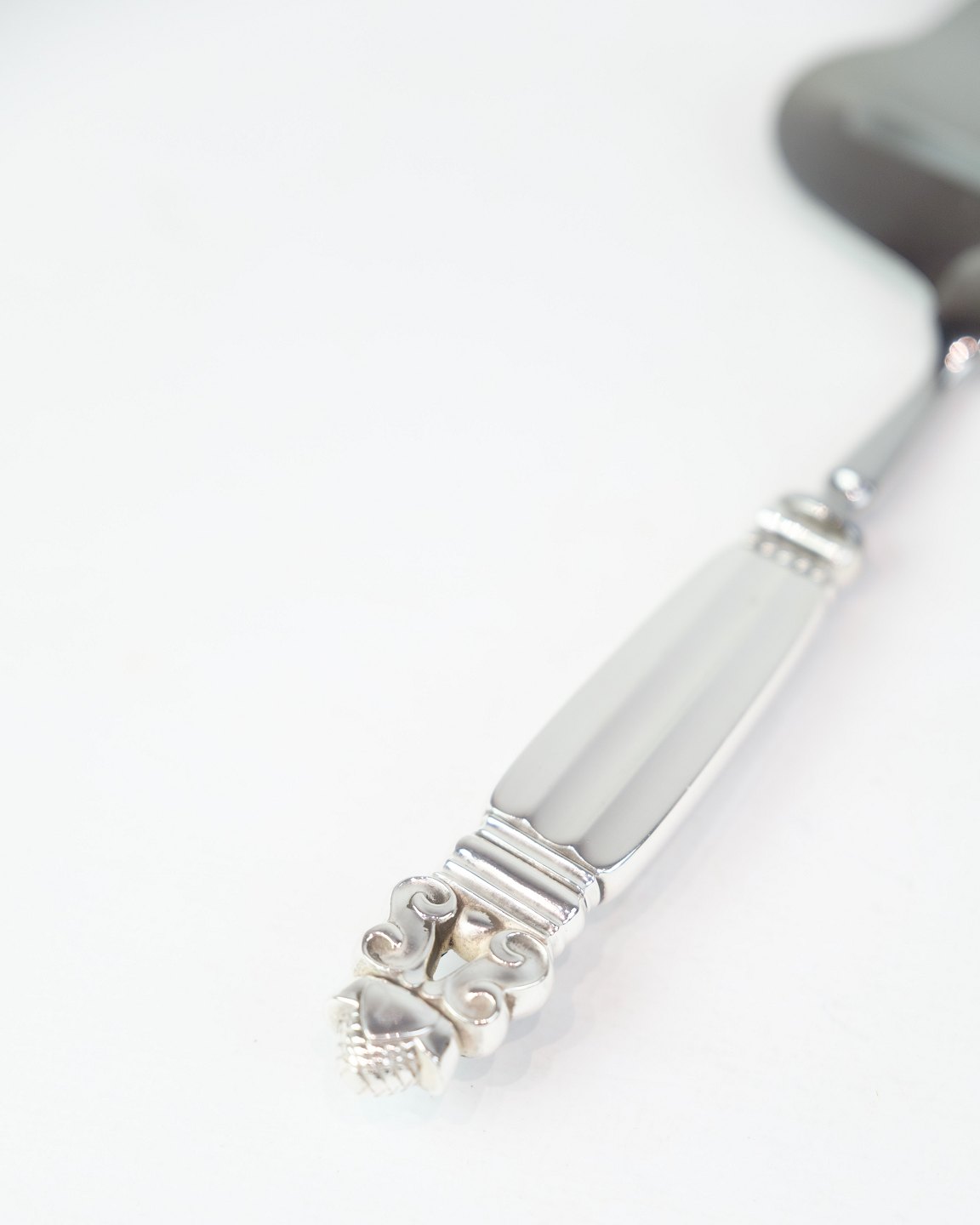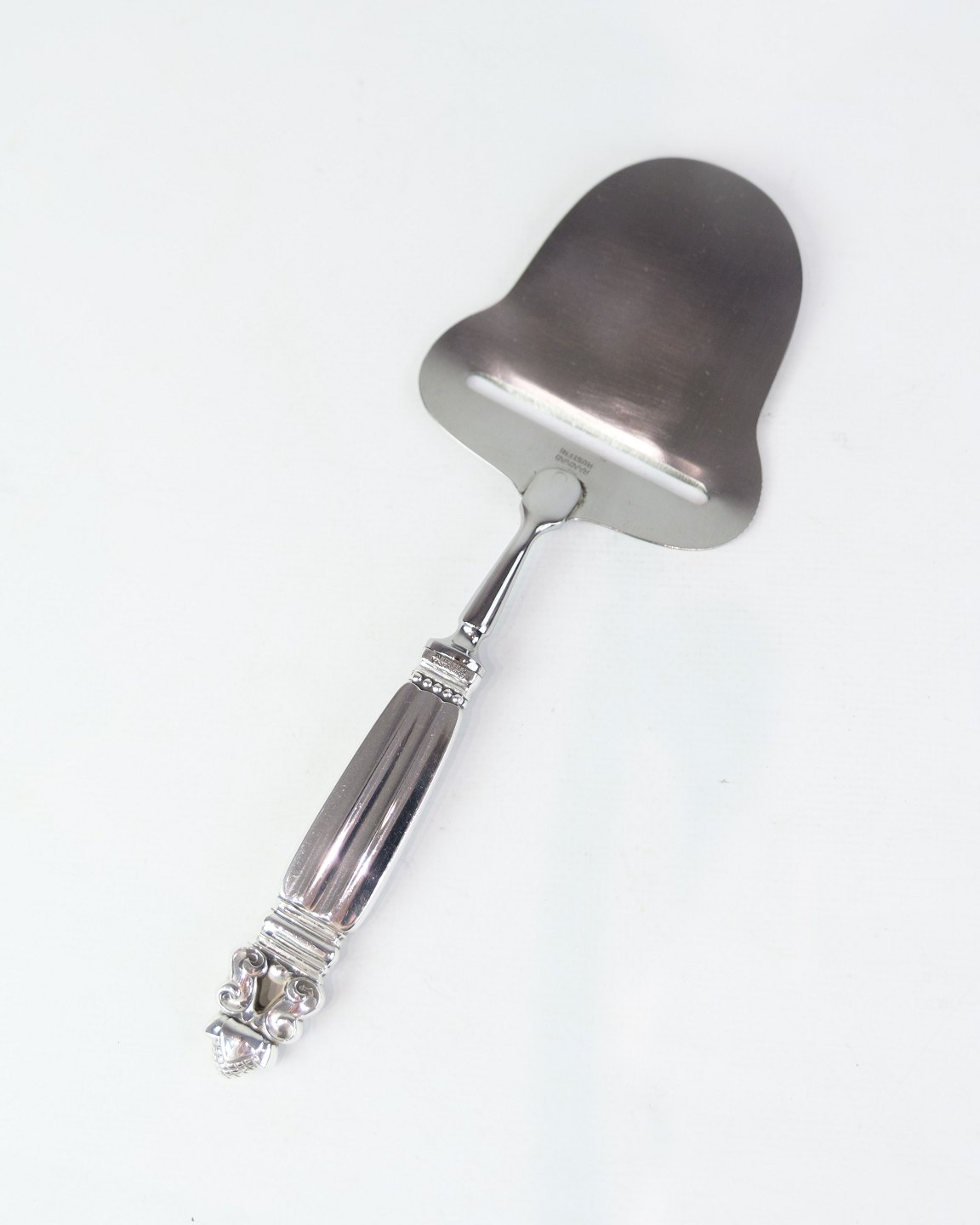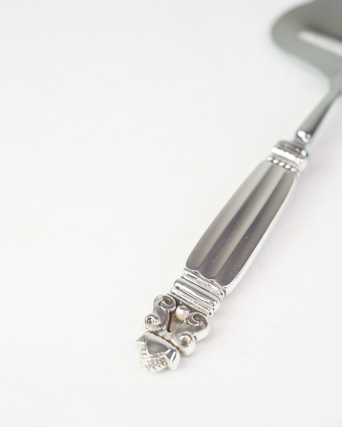 Georg Jensen ostehøvl i Konge mønster. Sterling sølv og rustfrit stål, produceret efter 1945. Længde 20,9 cm.
