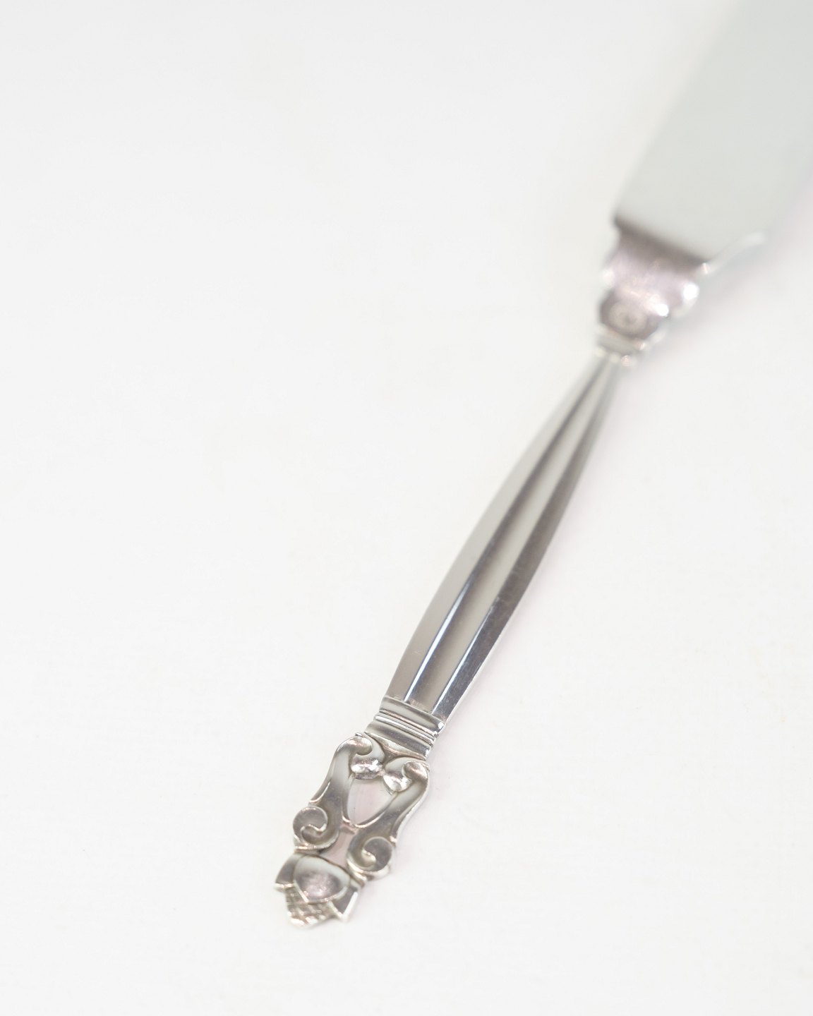 Georg Jensen fiskekniv i sterling sølv. Konge mønster, design af Johan Rohde 1915. Model No. 62. Længde 20,5 cm.